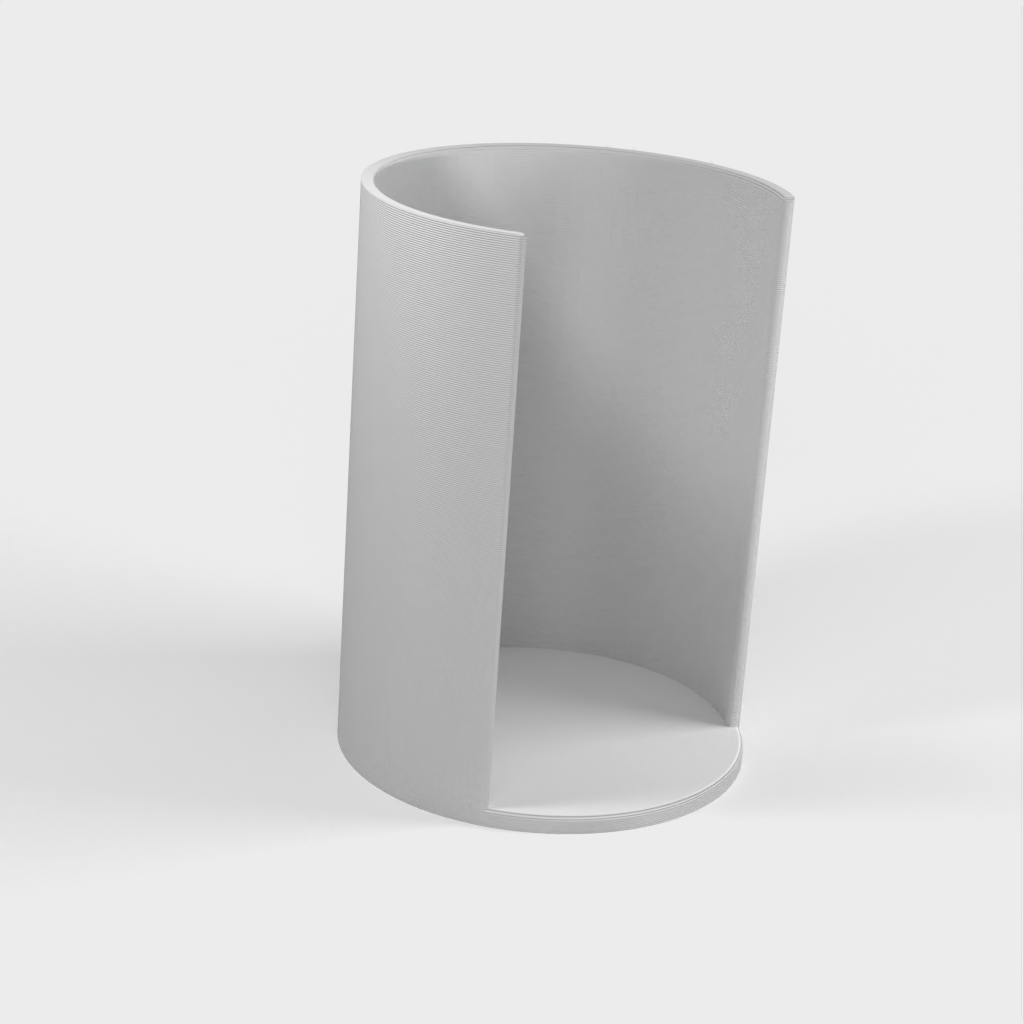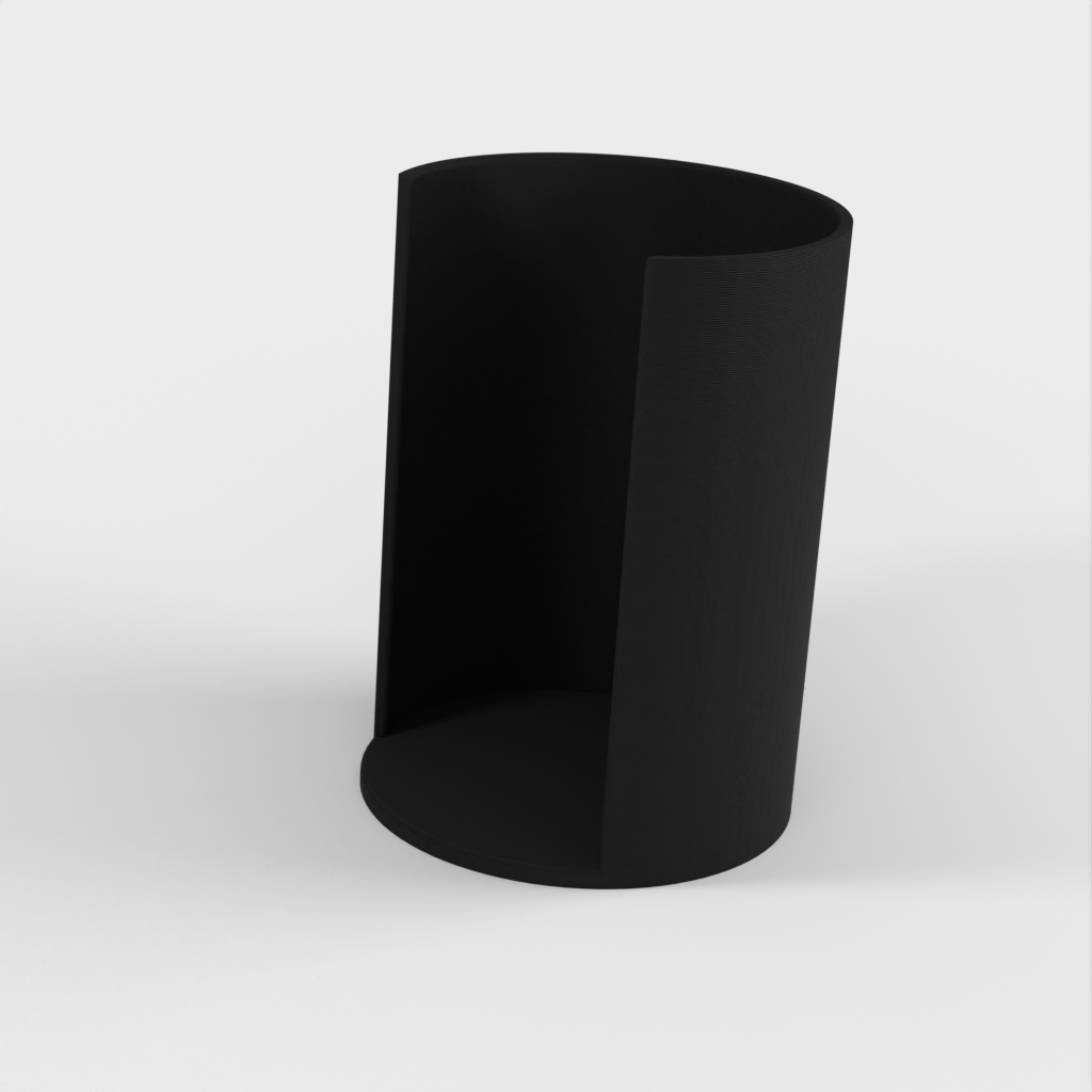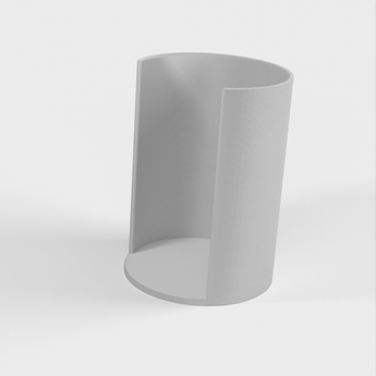 Aeropress filterhouder (hoog), met ruimte voor twee complete filterpakketten tegelijk. Het heeft dunnere wanden en vloer om het afdrukken te versnellen. De relevante afmetingen zijn 66 mm binnendiameter met een booguitsnijding van 110 graden. Een dubbelstapelfilter is ongeveer 90 mm, dit is iets hoger om ruimte te maken voor de plunjer.