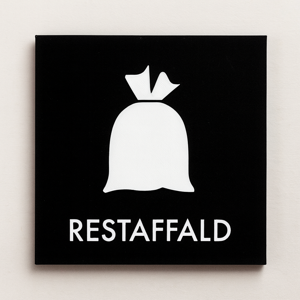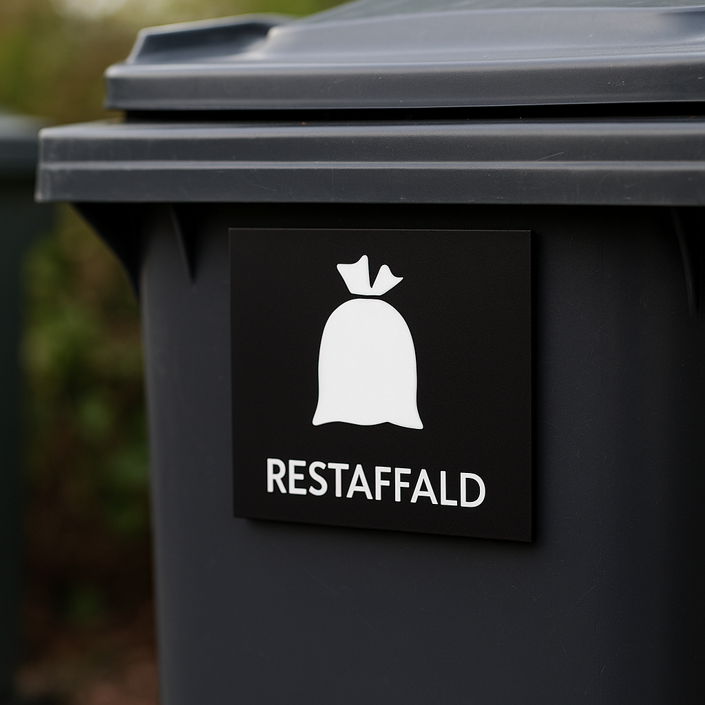 Geproduceerd in PLA-plastic met een duidelijk pictogram en tekst die het Deense sorteersysteem volgt.