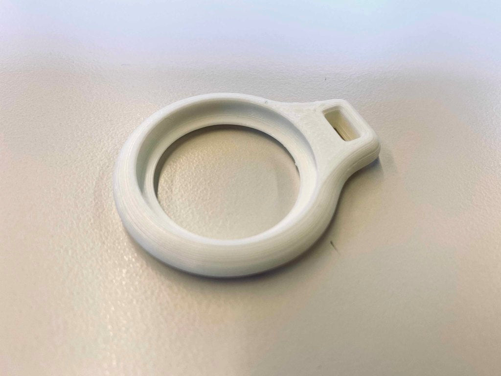 Een AirTag-veiligheidshouder die compatibel is met een sleutelhanger. Hiermee kun je je AirTag veilig in de houder verstoppen.