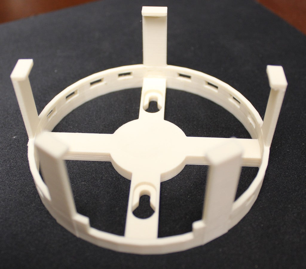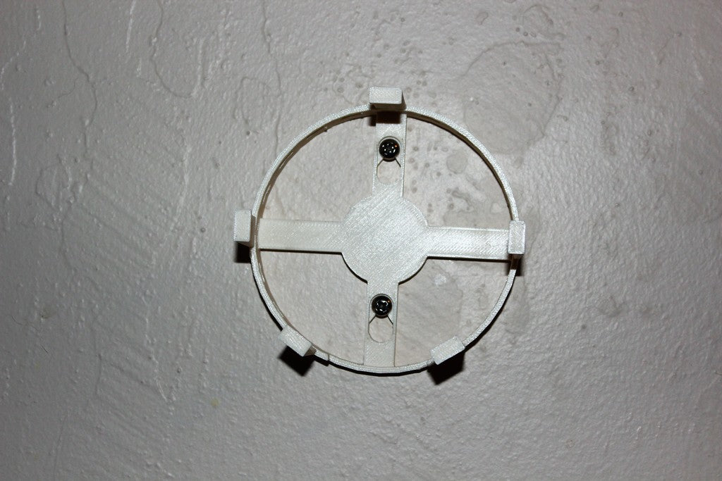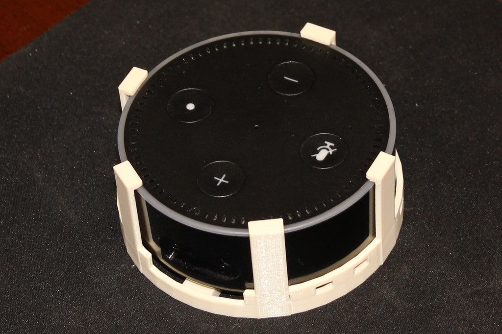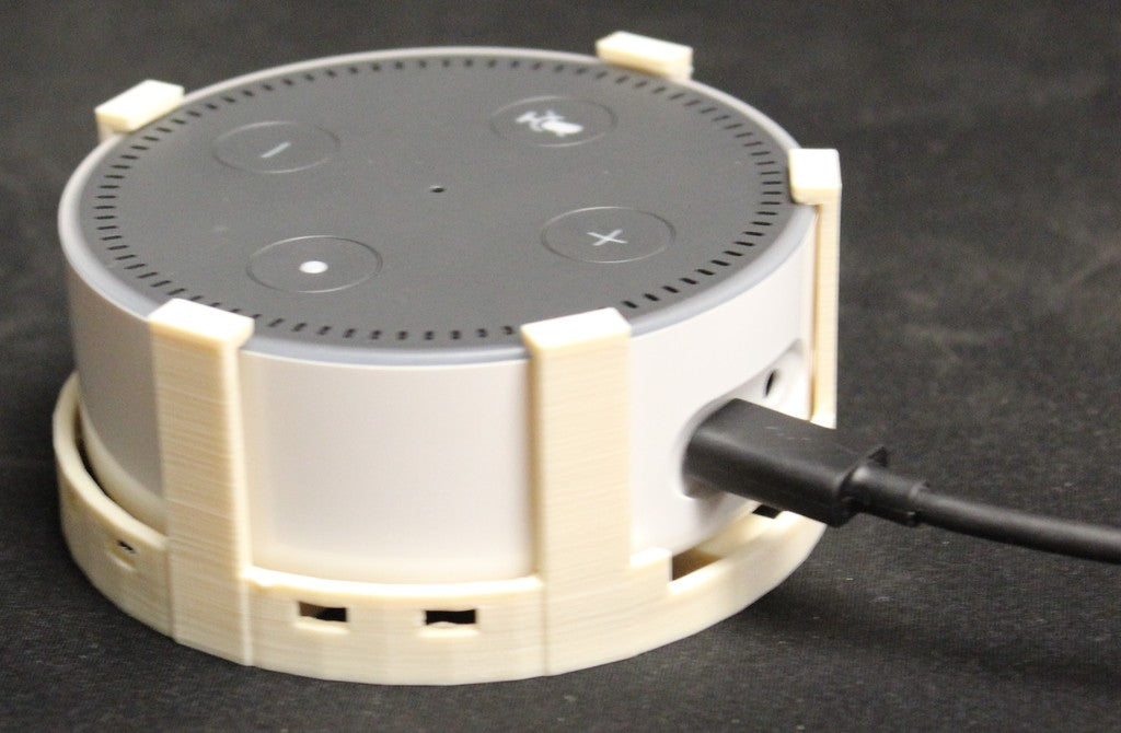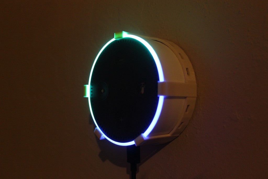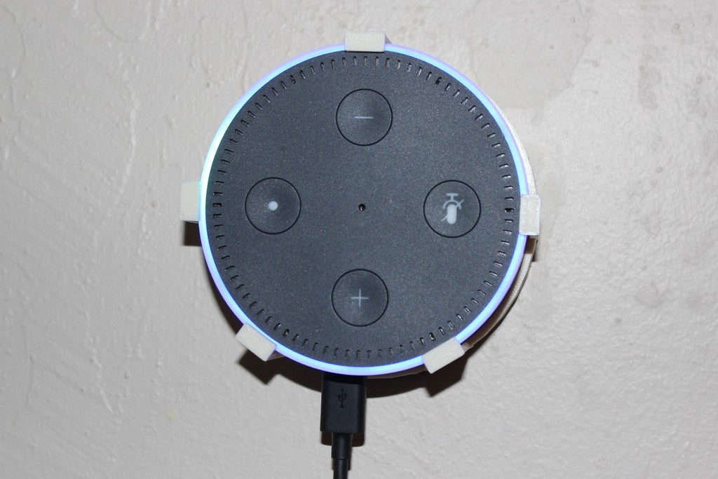 Dit is een muurbeugel voor een Amazon Echo Dot. Hij kan zowel aan de muur als aan het plafond bevestigd worden en houdt het apparaat stevig op zijn plaats. De houder heeft de volgende afmetingen (in metrische eenheden) voor de Amazon Echo Dot: