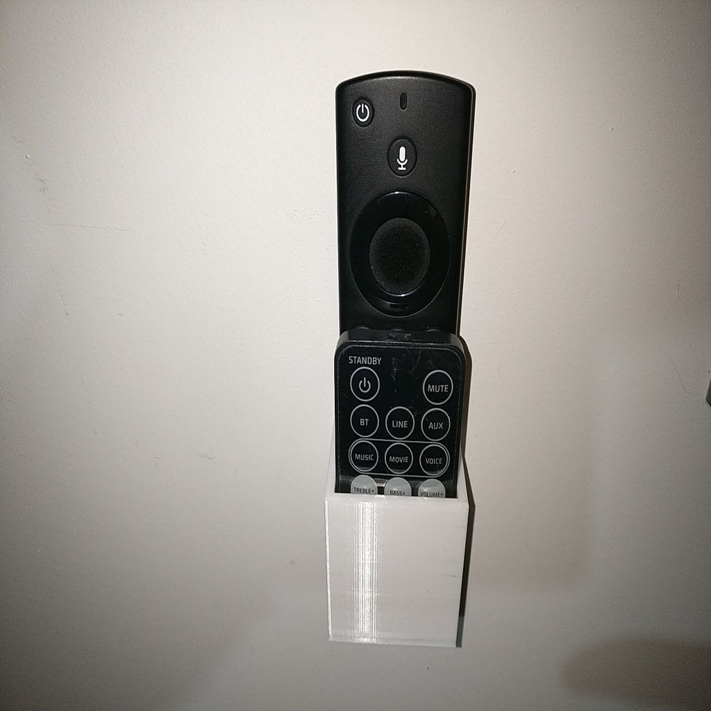 De houder kan eenvoudig worden gemonteerd op een verticale oppervlakte, zoals een muur of kast, waardoor deze ideaal is om je afstandsbediening binnen handbereik te houden zonder veel ruimte in te nemen. Er zijn twee modellen beschikbaar: één voor de FireTV-afstandsbediening zelf, en de andere heeft ook een extra vak voor een Goodmans soundbar-afstandsbediening, wat je flexibiliteit en opbergmogelijkheden biedt.