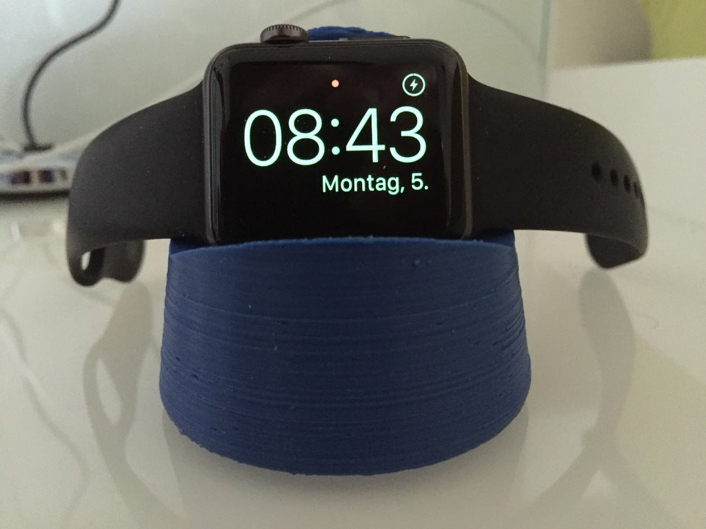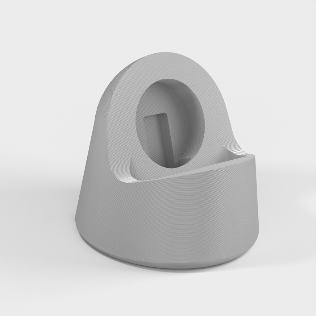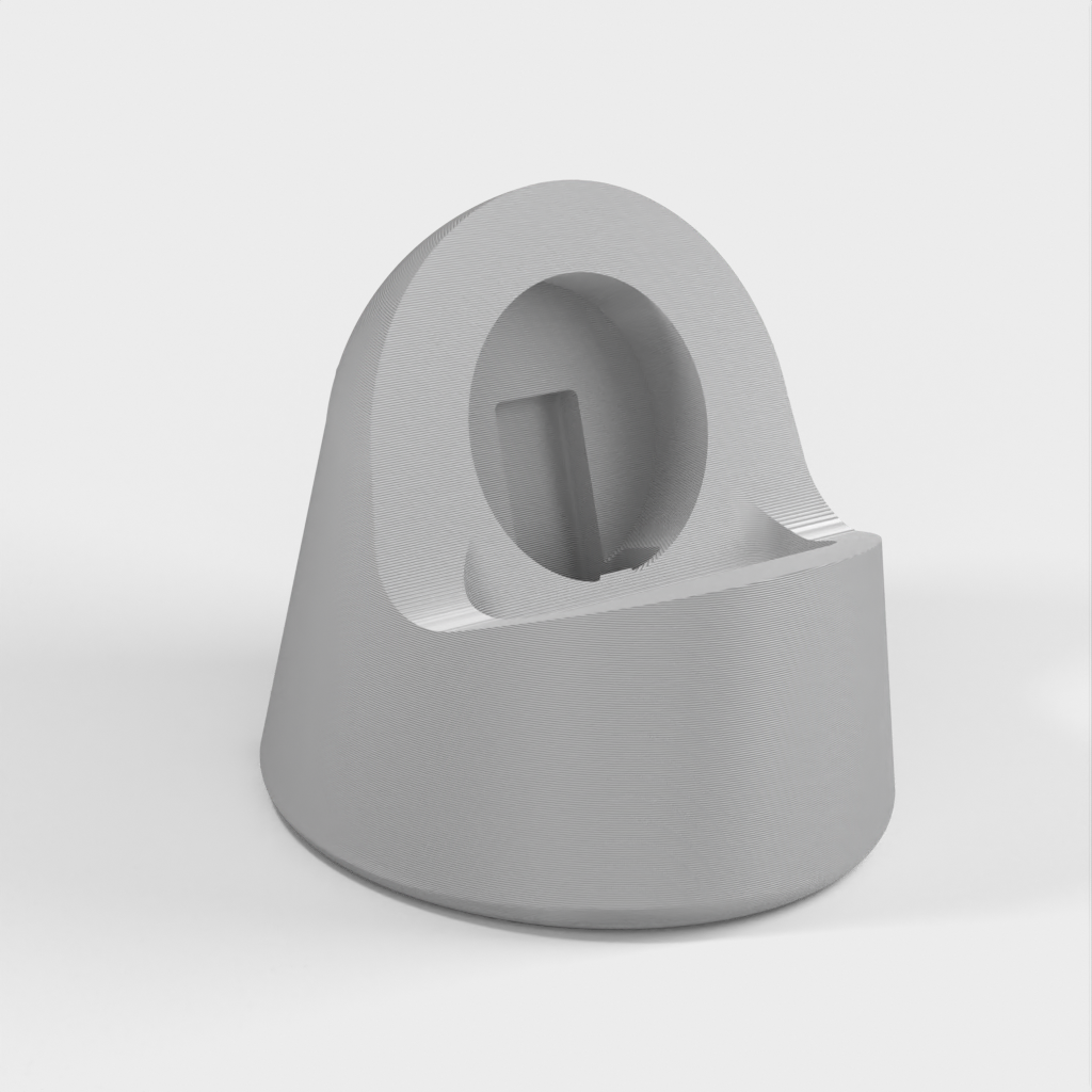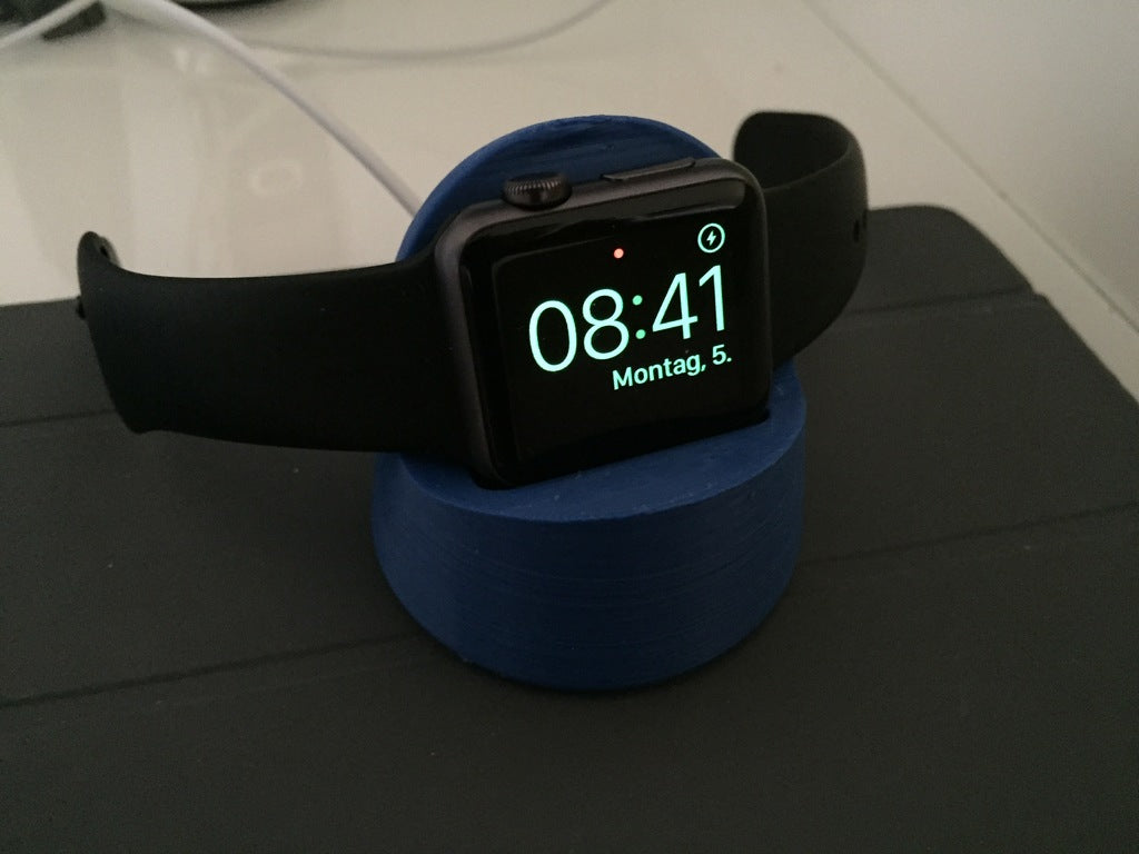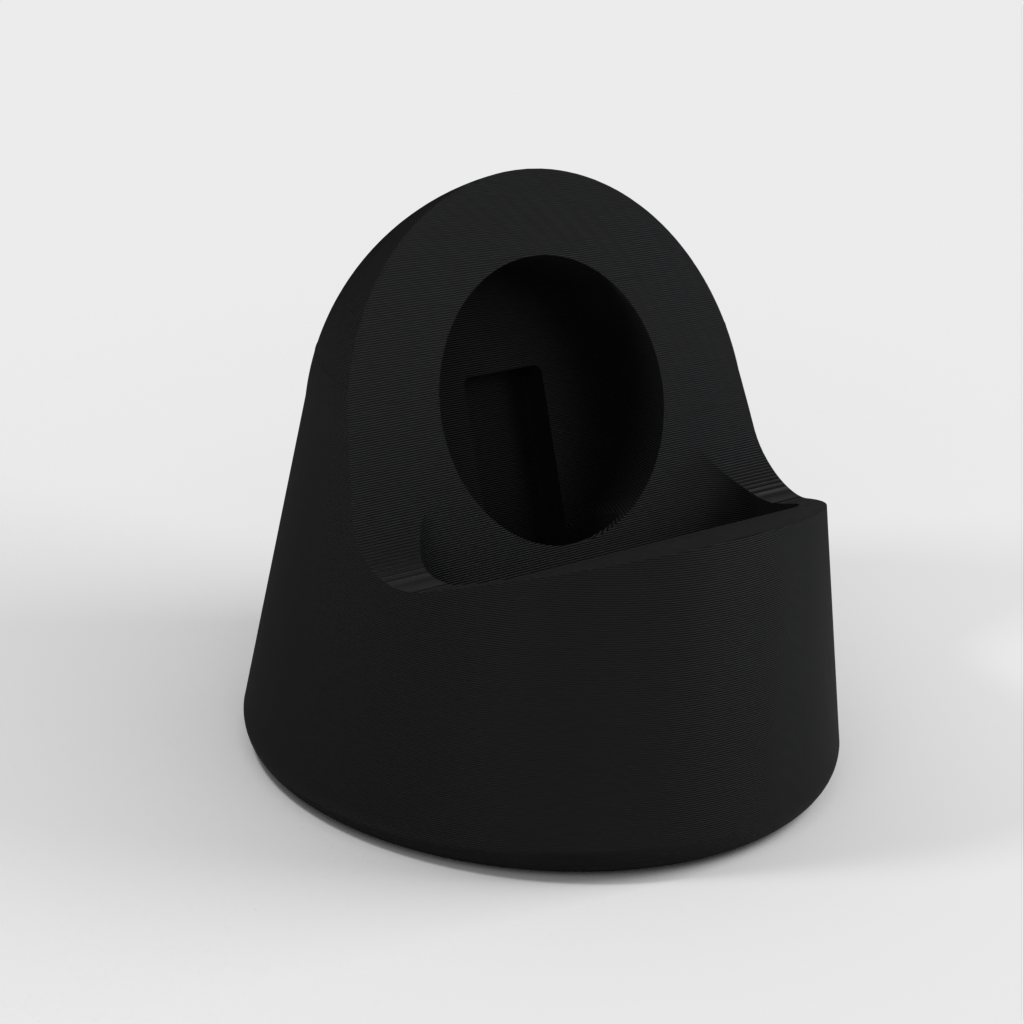 Dit is een oplaaddock voor een Apple Watch 38 mm. Het dock is ontworpen om perfect op je horloge te passen en op te laden, en je kunt de oplaadkabel gemakkelijk verwijderen via een discrete sleuf aan de onderkant. Het is ook ontworpen met grotere kabelkanalen voor meer compatibiliteit.
