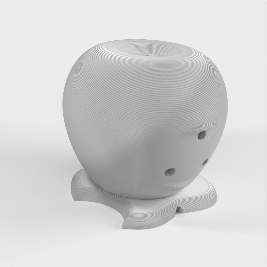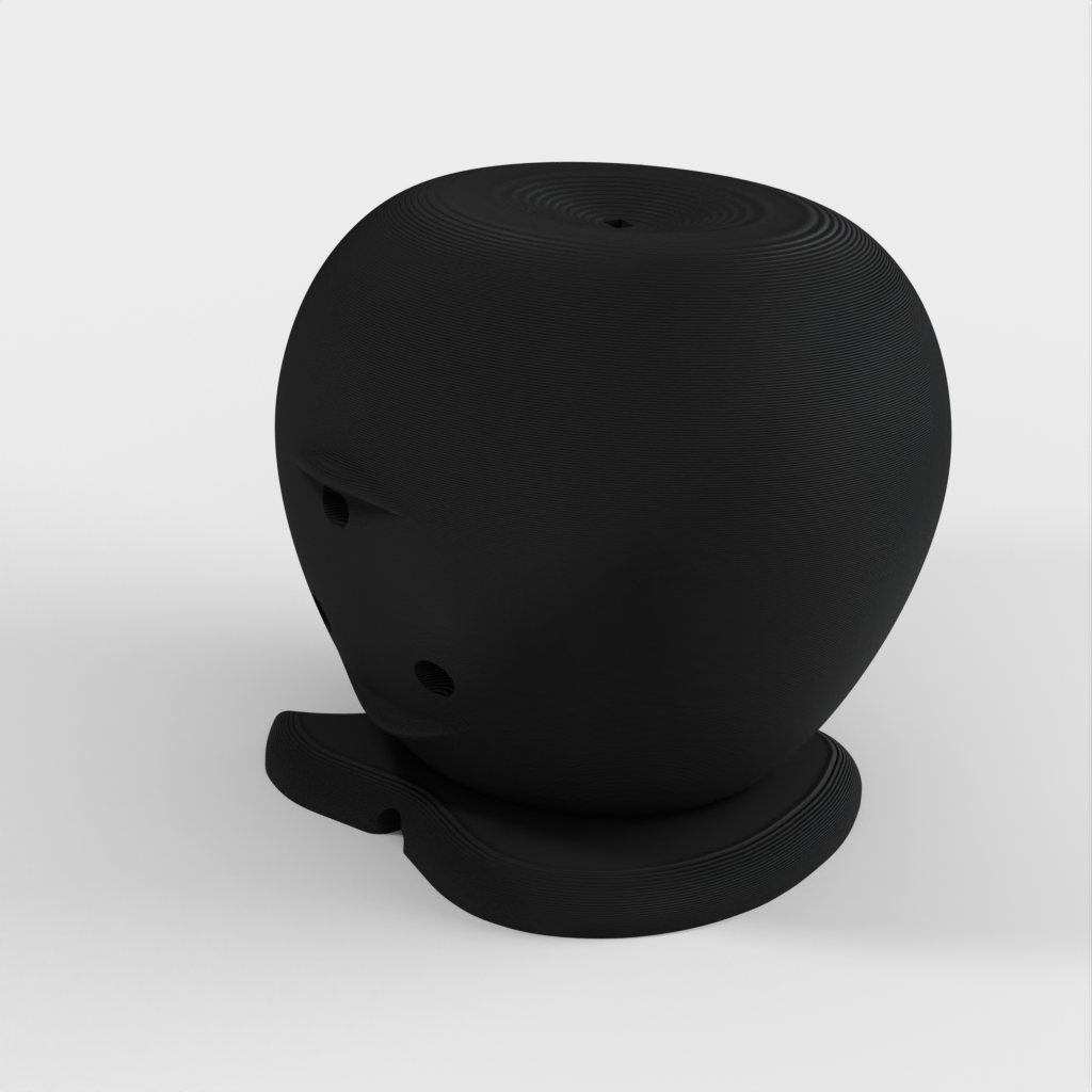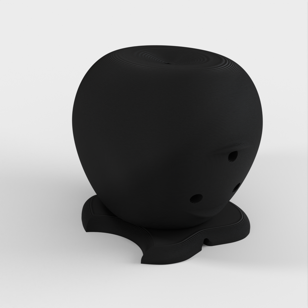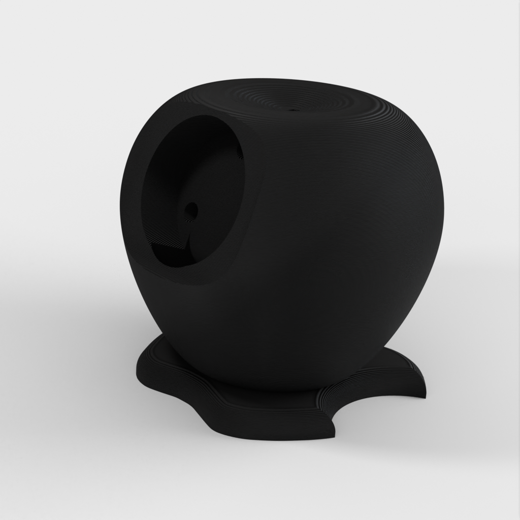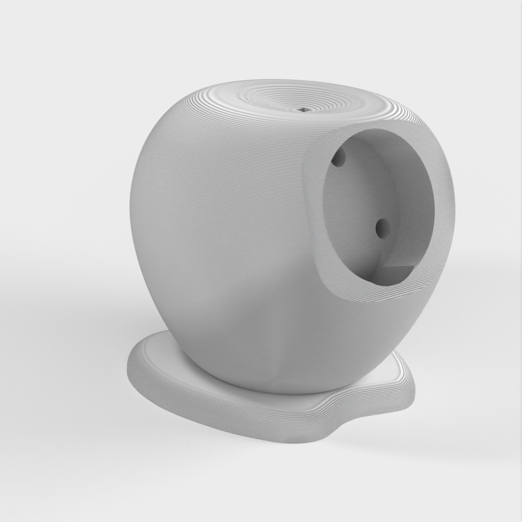 Oplaadstandaard voor Apple Watch (40 mm) ontworpen in de vorm van het Apple logo. De kabel wordt door het gat gevoerd en de oplader klikt vast. Het model heeft gaten aan de achterkant om de oplader eruit te schuiven als dat nodig is.