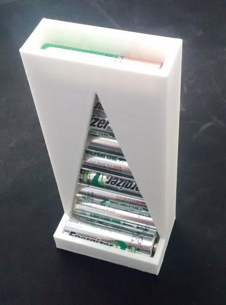 Een zeer praktische houder voor AA-batterijen. Met de ingebouwde montagegaten kan de batterijhouder eenvoudig worden geïnstalleerd waar het jou uitkomt. De batterijhouder heeft geen steunstructuur nodig tijdens het printproces.