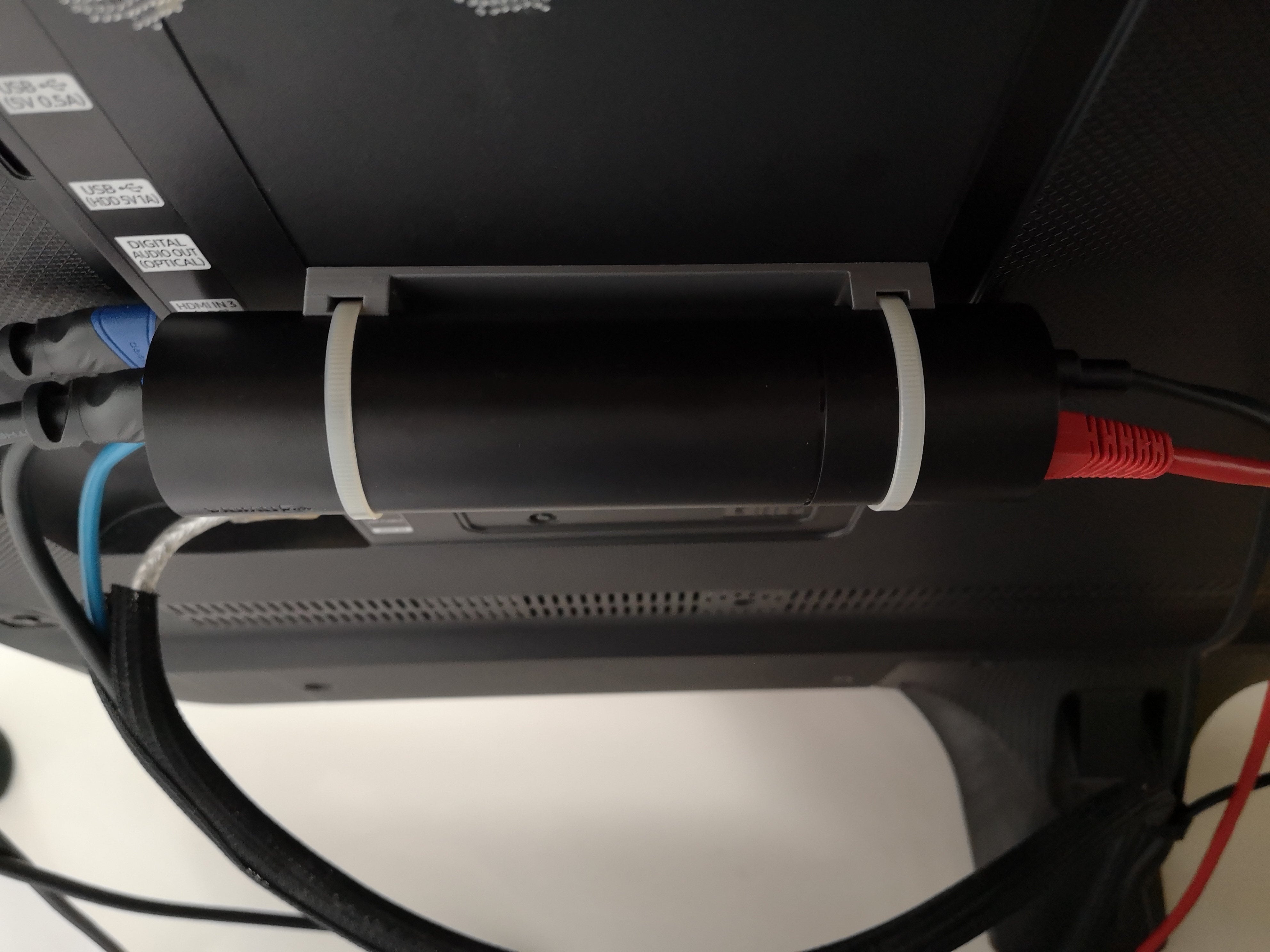 Voor optimale duurzaamheid en om de warmte van het apparaat en de tv te weerstaan, wordt aanbevolen om een hittebestendig materiaal zoals PETG te gebruiken, wat zorgt voor langdurige functionaliteit en stabiliteit van uw mount.