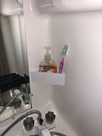 Zorg voor meer orde en functionaliteit in uw badkamer, vooral in compacte ruimtes zoals in een caravan of camper. Deze praktische houder is ontworpen om vloeibare zeep en tandenborstels efficiënt op te bergen, zodat uw badkamer netjes en opgeruimd blijft. Het universele ontwerp zorgt ervoor dat hij in de meeste 90-graden hoeken past en eenvoudig met dubbelzijdige tape kan worden bevestigd. Of u nu op zoek bent naar een slimme wastafelorganizer voor zeep of een vaste plek voor uw tandenborstels, deze houder biedt een discrete en functionele oplossing voor de badkamer.