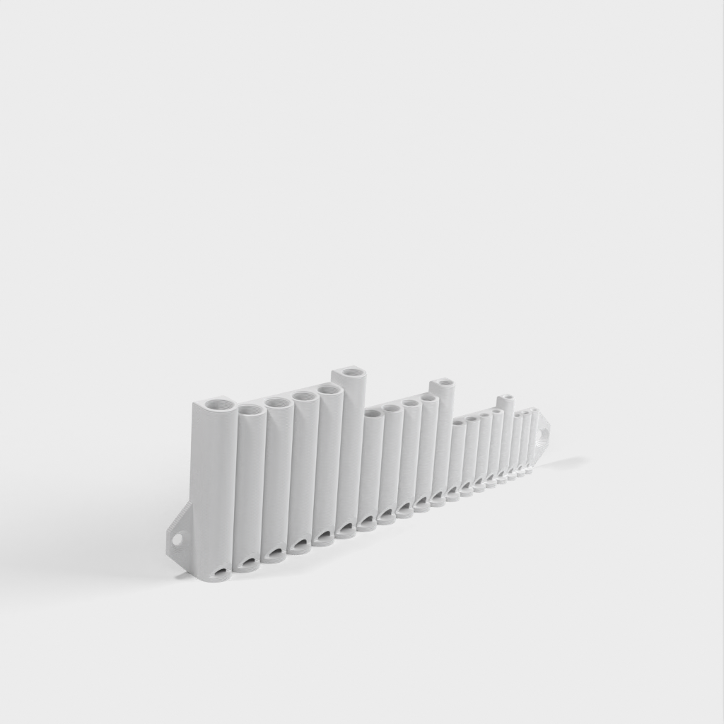 Deze compacte boorhouder kan rechtstreeks aan een muur worden bevestigd of in je gereedschapskist worden geplaatst. Met deze houder kun je gemakkelijk je boren met een diameter tussen 1 mm en 10 mm bijhouden, met intervallen van 0,5 mm (bijv. 1,5 mm, 2 mm, 2,5 mm enz.). De gaten voor boren met de maten 2,5 mm, 5,0 mm, 7,5 mm en 10 mm zijn verhoogd, zodat ze gemakkelijker te herkennen zijn. De boorhouder kan eenvoudig worden bevestigd met 2 schroeven.