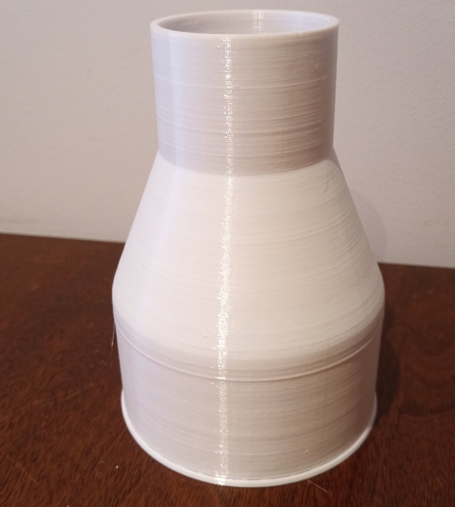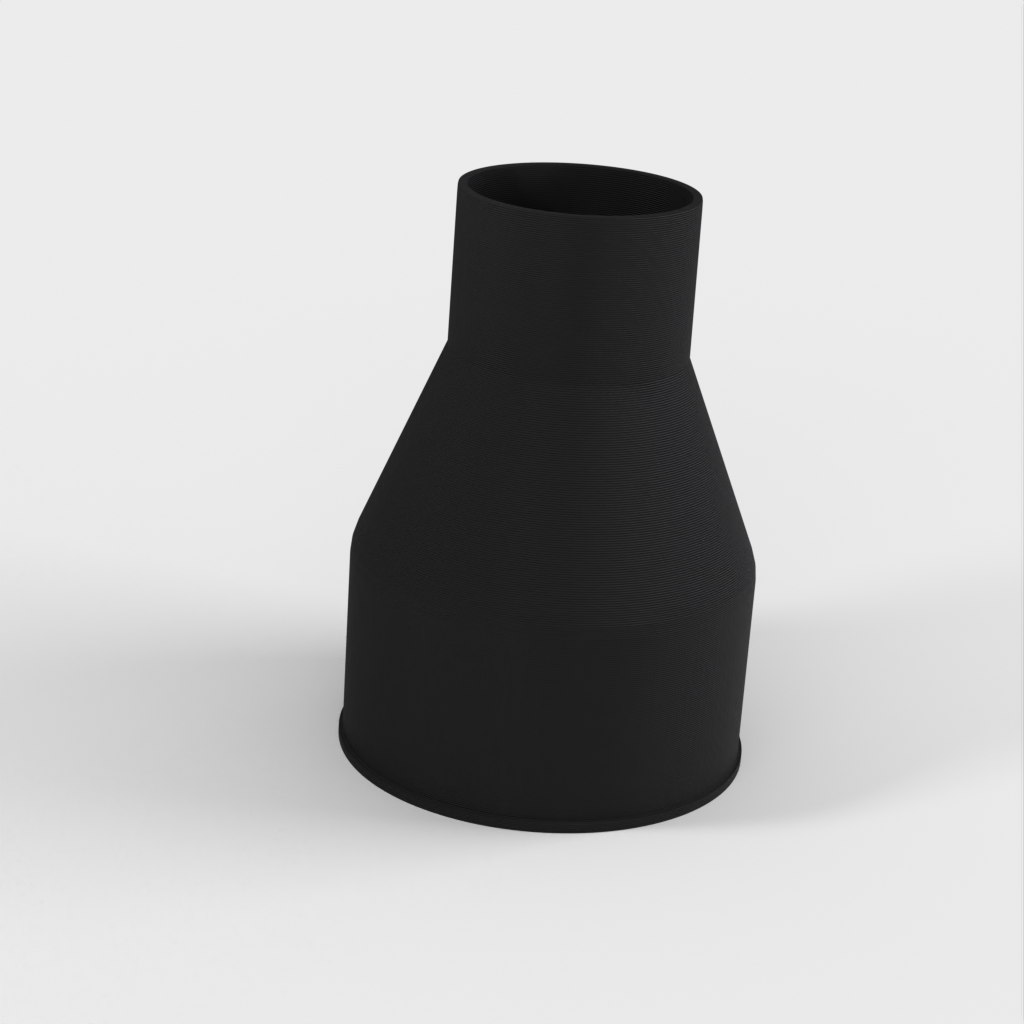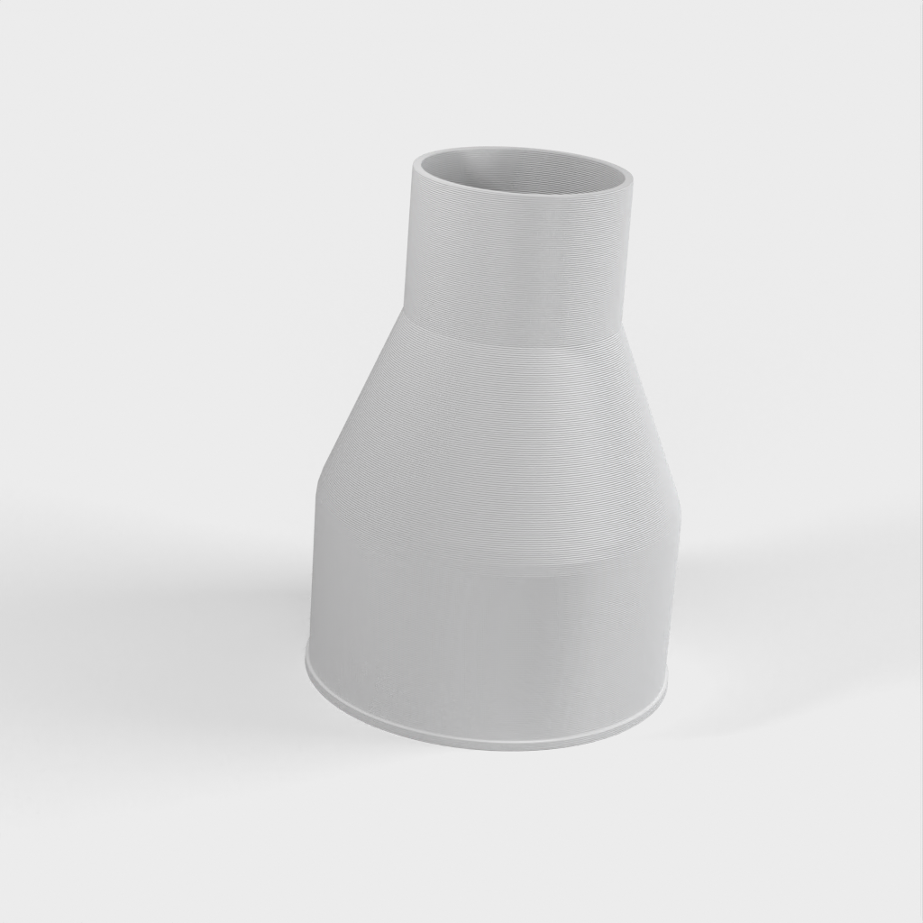 Adapter voor mijn Bosch GTS 10 XC tafelzaag-stofpoort waar een 100 mm spaanzuigslang op past. De grote kant van de adapter is 100 mm met een kleine lip om te voorkomen dat de slang wegglijdt, terwijl de kleinere kant van 58 mm naar 57 mm snijdt om een wrijvingspassing in de stofpoort van de tafelzaag te garanderen.