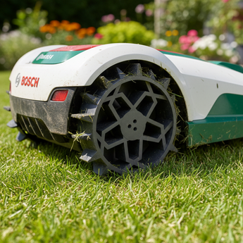 Upgrade uw Bosch Indego S500 met deze speciaal ontworpen achterwielen die de grip aanzienlijk verbeteren op oneffen en vochtige gazons. Het diepe profielpatroon voorkomt dat de robot vast komt te zitten, terwijl het robuuste ontwerp stabiliteit garandeert. Een ideale oplossing om de prestaties van de robotgrasmaaier in de tuin te optimaliseren.