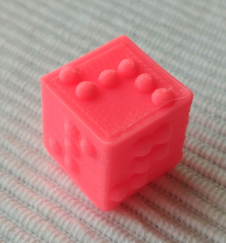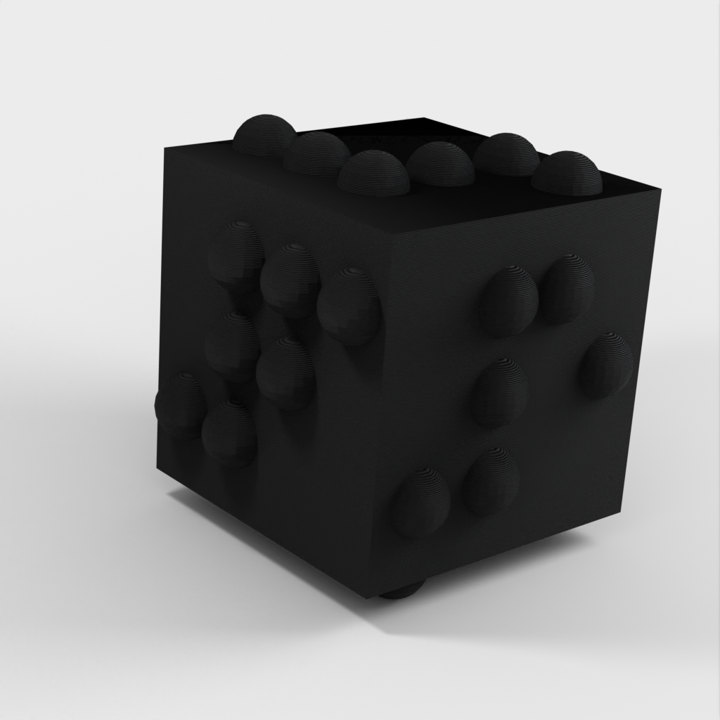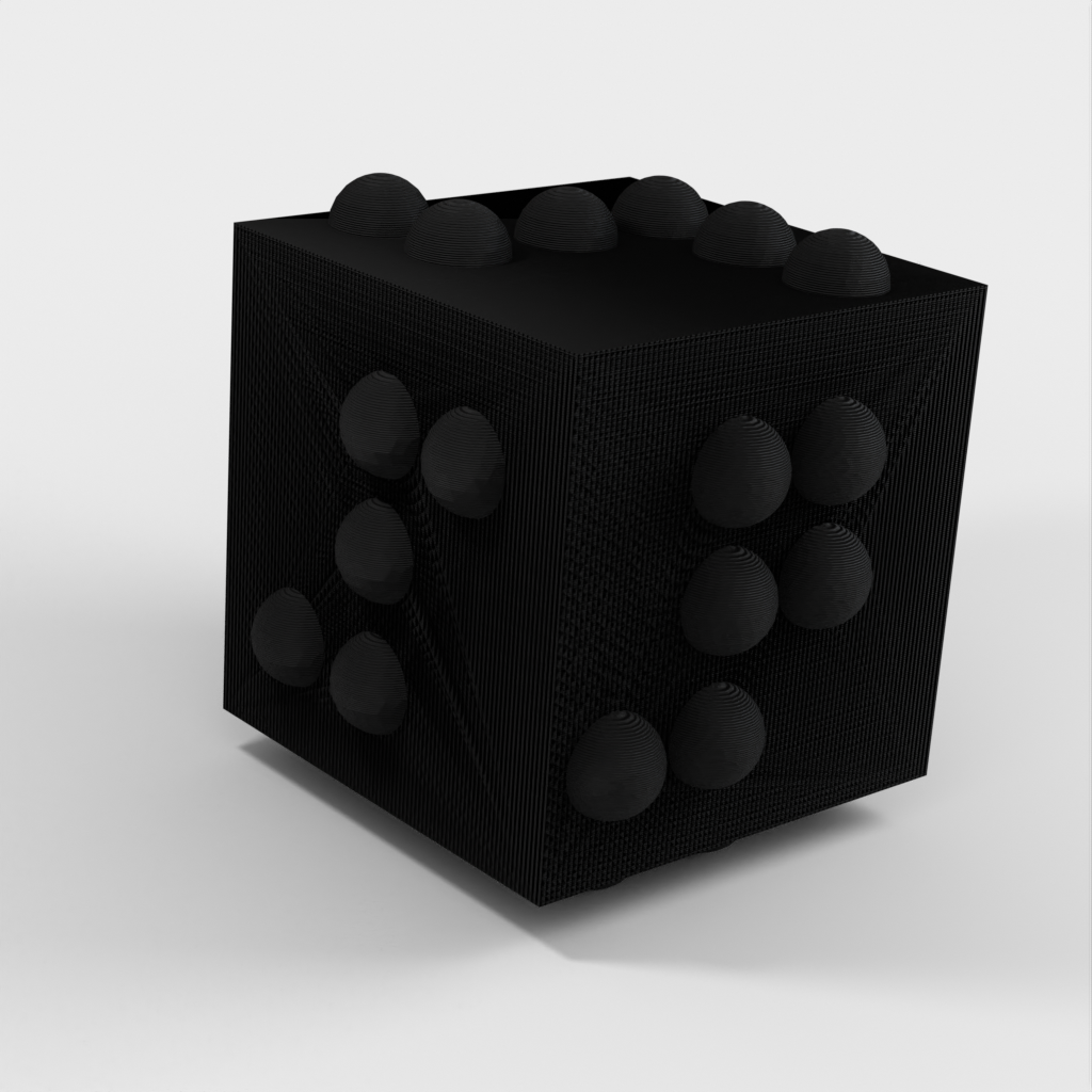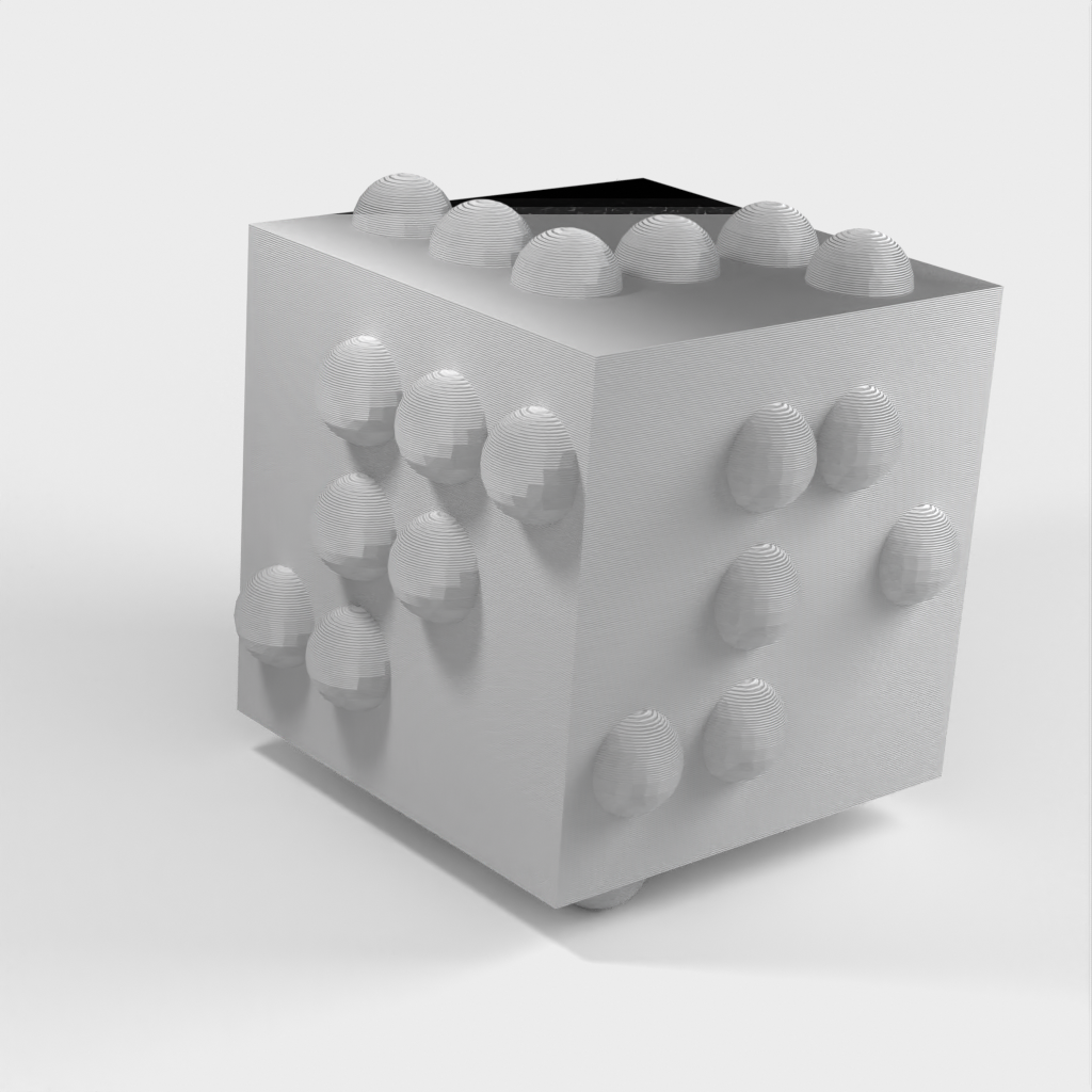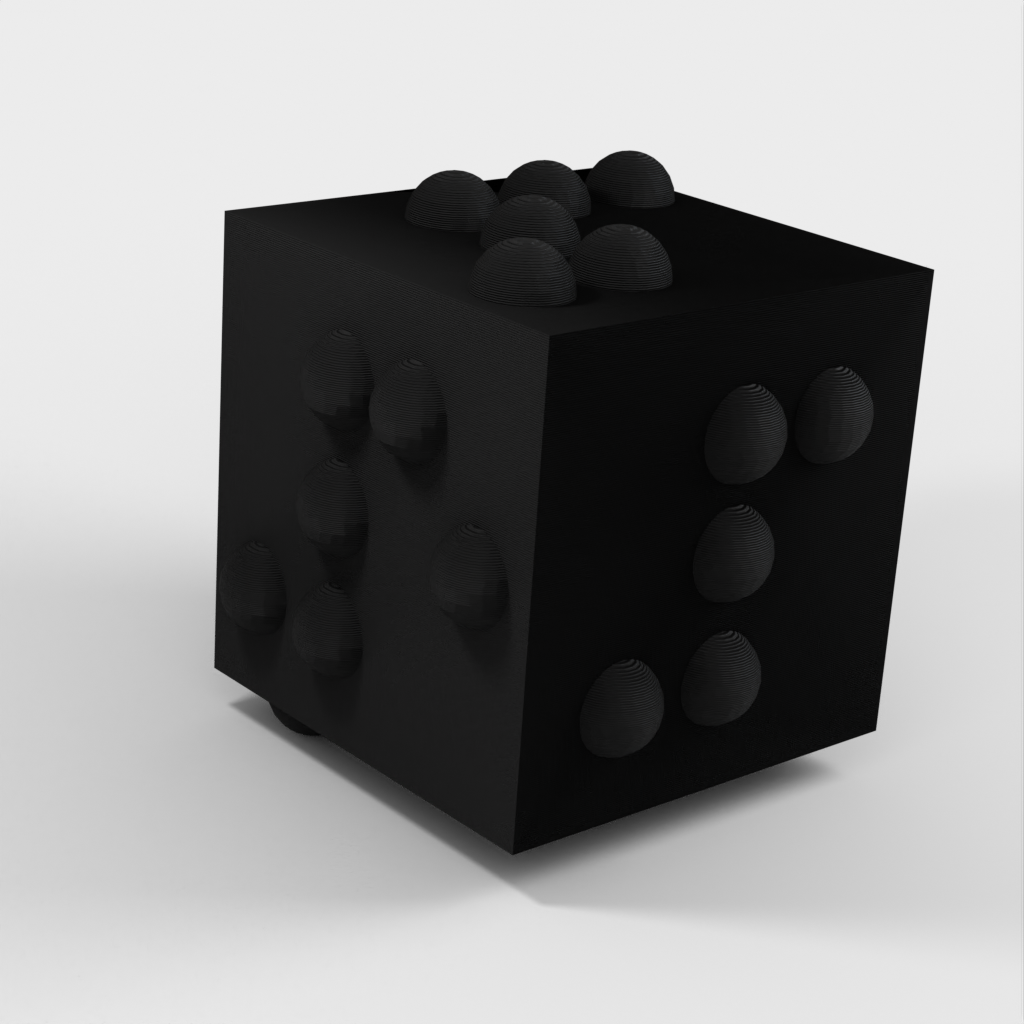 Doof ontworpen om te spelen voor mensen met een visuele beperking. Dit kan worden gebruikt om blinden dobbelspellen te laten spelen door de bovenkant aan te raken om te weten welk nummer ze hebben gespeeld.