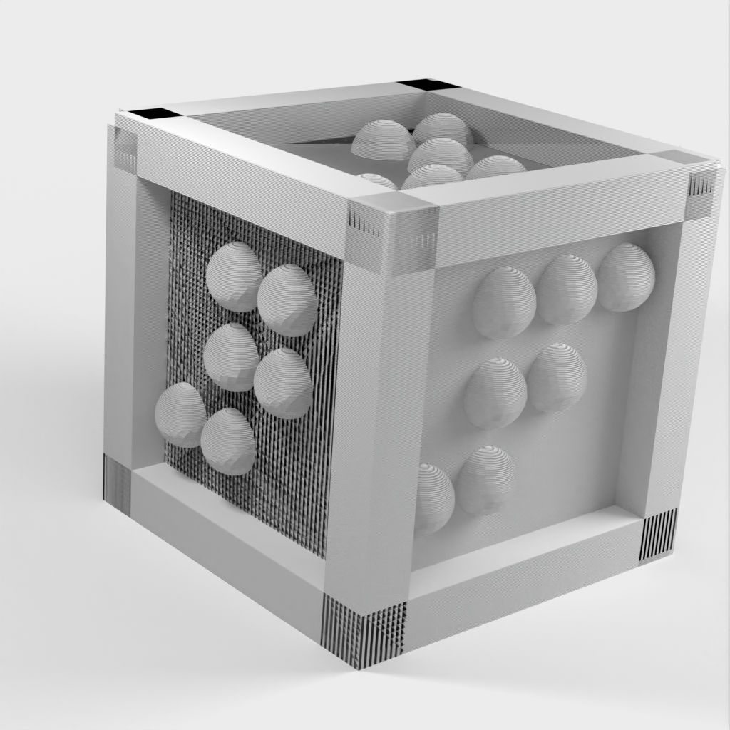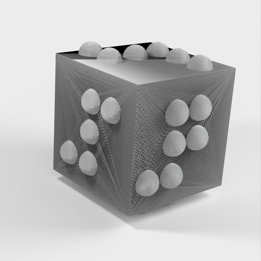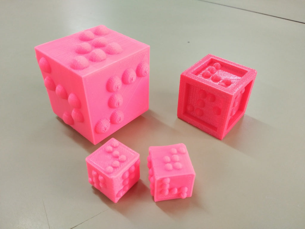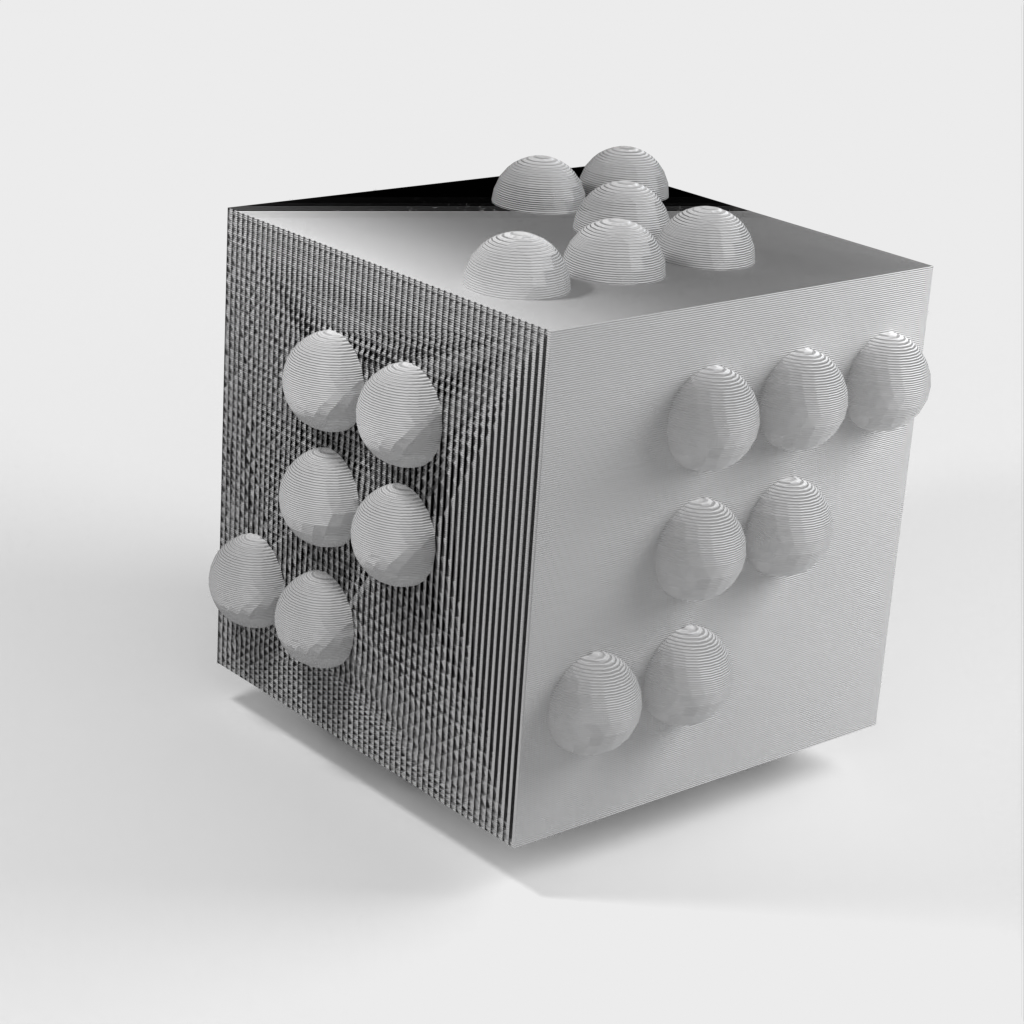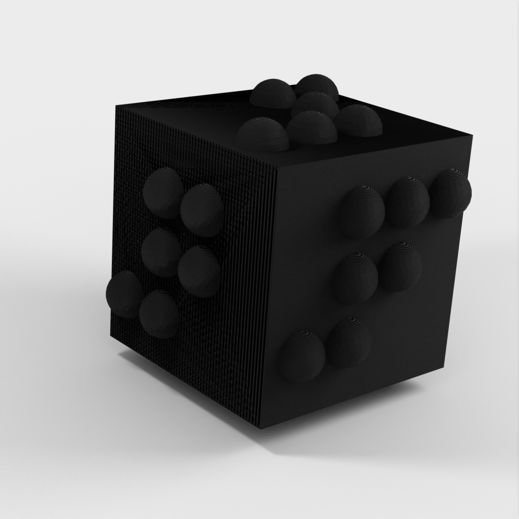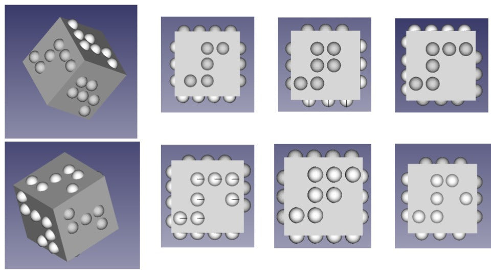 Doof ontworpen om te spelen voor mensen met een visuele beperking. Dit kan worden gebruikt om blinden dobbelspellen te laten spelen door de bovenkant aan te raken om te weten welk nummer ze hebben gespeeld.