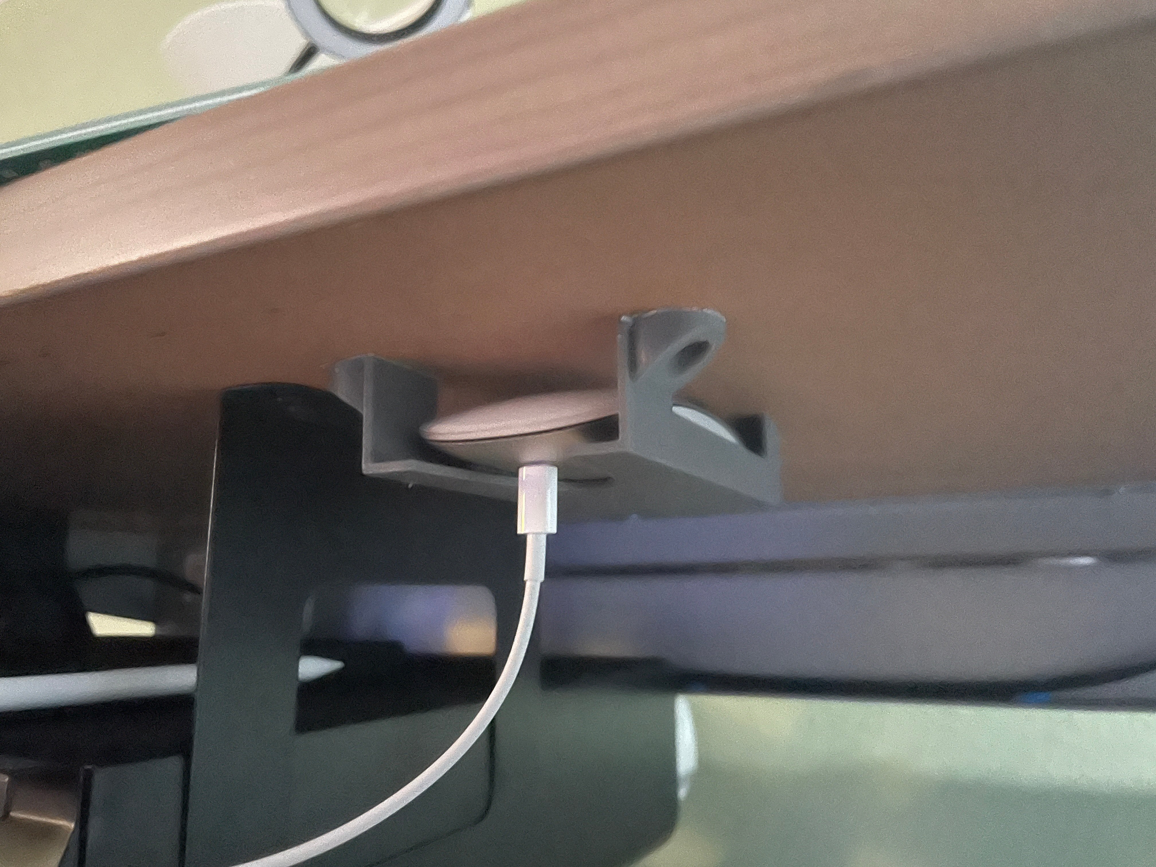 De Magic Mouse-houder voor onder het bureau biedt een praktische en georganiseerde oplossing voor het opbergen van je Magic Mouse. Hij kan eenvoudig onder het bureau worden bevestigd met dubbelzijdig tape of schroeven. Het ontwerp heeft een gat aan de onderkant waardoor de muis kan worden opgeladen terwijl hij in de houder zit, zodat je muis altijd gebruiksklaar is.