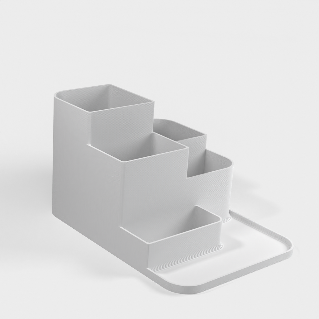 Een bureau-organizer ontworpen om u te helpen uw bureau netjes te houden en uw kantoorbenodigdheden op een efficiënte manier te organiseren. Dit artikel wordt gebruikt voor het opbergen van kantoorbenodigdheden, notitieboekjes, inpaktape en andere kleine voorwerpen die vaak op bureaus te vinden zijn.