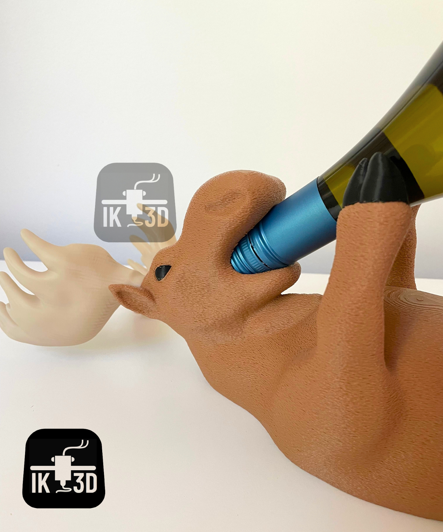 Ontdek de charmante en functionele eland wijnfleshouder, die een unieke toets geeft aan je huisbar, keuken of woonkamer. Deze decoratieve wijnhouder toont een speelse eland die elegant je wijnfles vasthoudt, alsof het een grappige slok is. Het is niet alleen een praktische wijnopslag, maar fungeert ook als een opvallende gespreksstarter en een leuk element in je interieur. Plaats hem op een aanrechtblad of een plank om een persoonlijke uitdrukking te creëren. Het is een ideaal wijnaccessoire en een attent cadeau voor wijnliefhebbers of degenen die creatieve en grappige dieren wijnfleshouders waarderen.