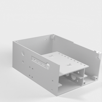 Desktopbehuizing voor Raspberry Pi 4B met ingebouwde ruimte voor een 5V 4A-voeding en maximaal 2 SATA-schijven. Er is ook opslagruimte voor uw eigen apparatuur.