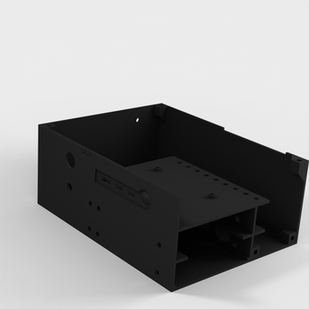 Desktopbehuizing voor Raspberry Pi 4B met ingebouwde ruimte voor een 5V 4A-voeding en maximaal 2 SATA-schijven. Er is ook opslagruimte voor uw eigen apparatuur.