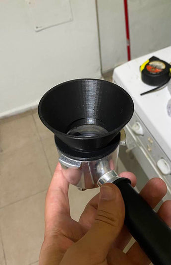 Doseertrechter ontworpen voor de 51mm DeLonghi Dedica portafilter. Met deze trechter kun je koffie in het portafilter doen zonder dat je koffie over het aanrecht morst. De trechter past op alle 51mm portafilters en er is een goede kans dat hij ook op grotere portafilters past, maar dat is nog niet getest.