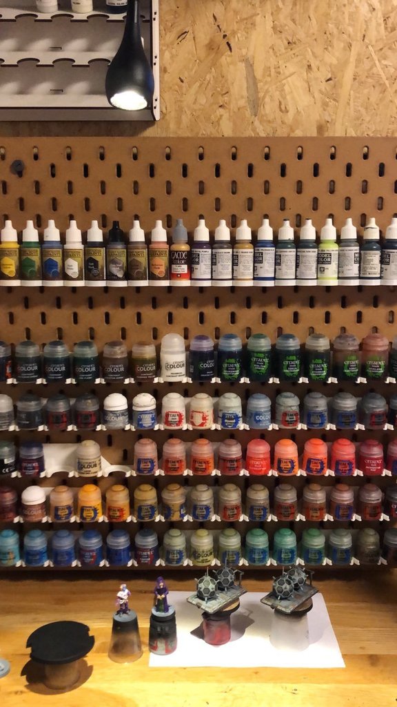 Druppelfleshouder voor IKEA SKÅDIS knobbelplank. De houder is geschikt voor 7 druppelflacons en is getest met de merken Vallejo en Army Painter.