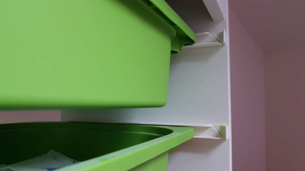 IKEA TROFAST Eindstop is ontworpen om te voorkomen dat de containers in uw TROFAST-meubel van de achterkant glijden, waardoor muurschade wordt voorkomen doordat de containers ertegenaan worden geduwd. Het gebruik van deze eindstop vereist geen schroeven, dus het zal de houten meubels niet beschadigen.