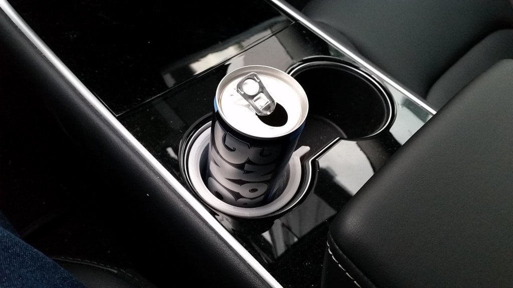 Deze energiedrankblikhouder is speciaal ontworpen voor de Tesla Model 3. Hij past zowel op energiedrankblikjes van 250 ml (~53 mm diameter) als van 330 ml (~58 mm diameter) en houdt ze stevig vast, zelfs als u het gaspedaal intrapt. Grote hoeveelheden vloeistof kunnen echter lekken en de console tussen de voorstoelen, het dak en de achterbank in uw auto beschadigen als het blikje open is en meer dan ~1/3 vol is.