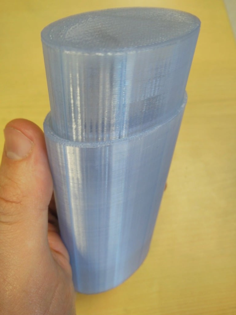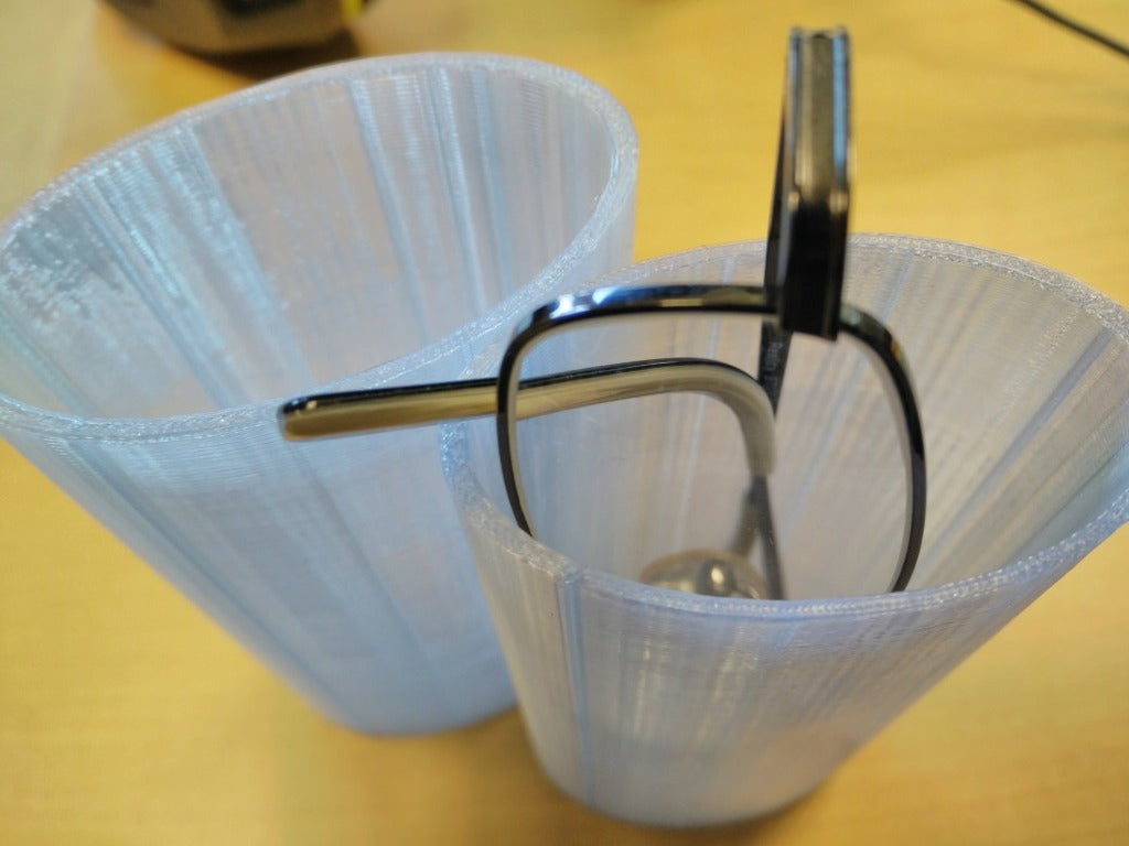Eenvoudige koker voor brillen, bestaande uit twee cilinders die in elkaar schuiven. De koker is geschikt voor opgevouwen brillen en zonnebrillen tot de afmetingen 3 cm x 5 cm x 20 cm.