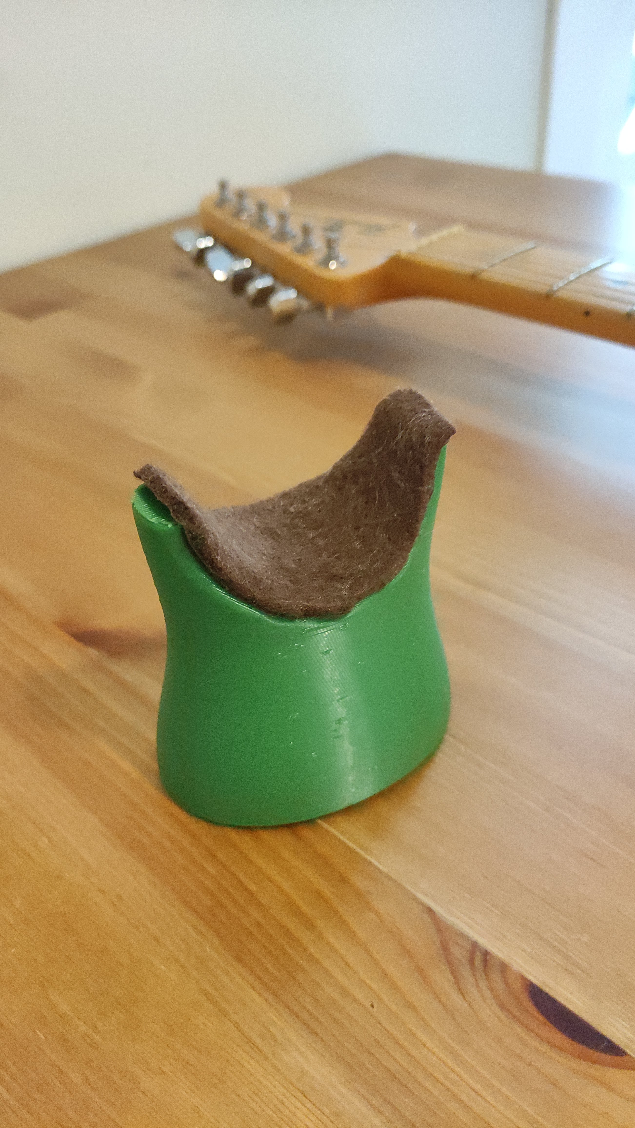 De neksteun is echter veelzijdig en kan ook hoger op de hals van de gitaar worden gebruikt, afhankelijk van de taak. Om de lak en het houtwerk van de gitaar te beschermen, wordt het ten zeerste aanbevolen om het contactoppervlak te bekleden met een zacht materiaal zoals zelfklevend vilt. De licht gebogen basis is zorgvuldig ontworpen om een goede balans te bieden en de natuurlijke hoek van de gitaar tijdens het werk te volgen, wat bijdraagt aan een verhoogde stabiliteit.