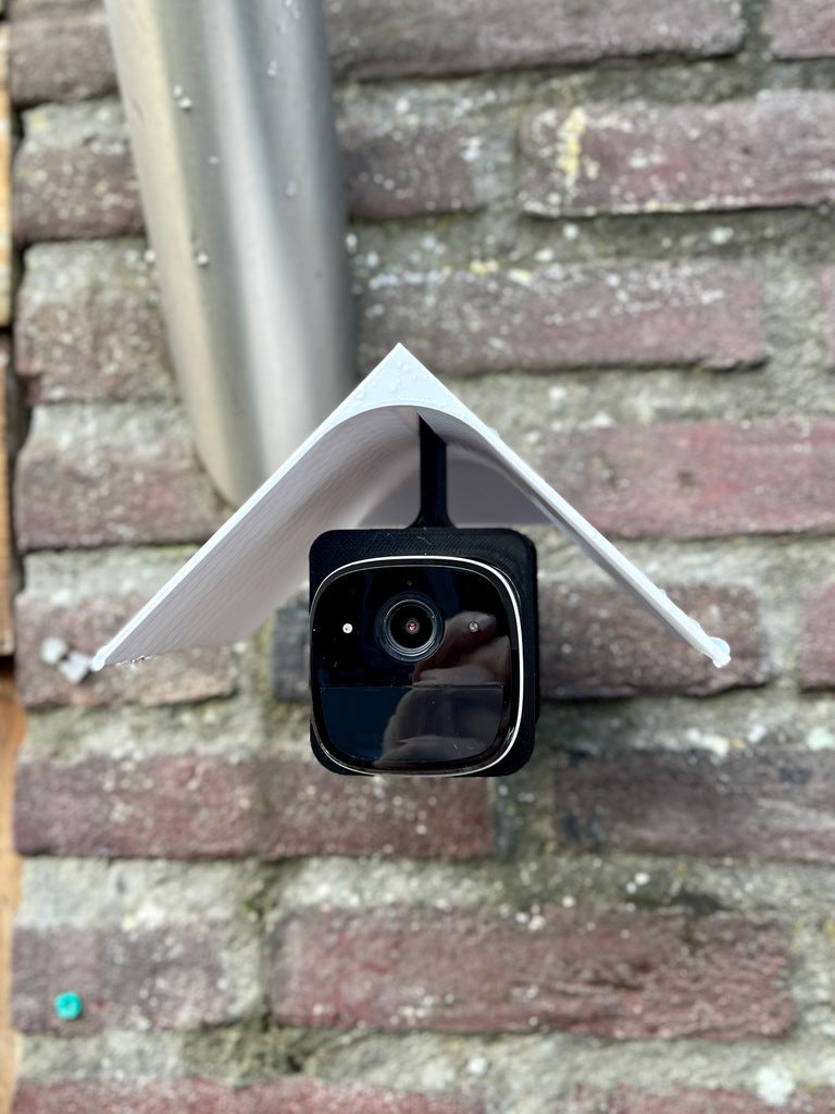 De regenhoes kan de camera niet beschermen tegen vocht in de lucht. Het is aan te raden om te printen met PETG filament, dit is hittebestendiger en daardoor beter geschikt voor buitengebruik.