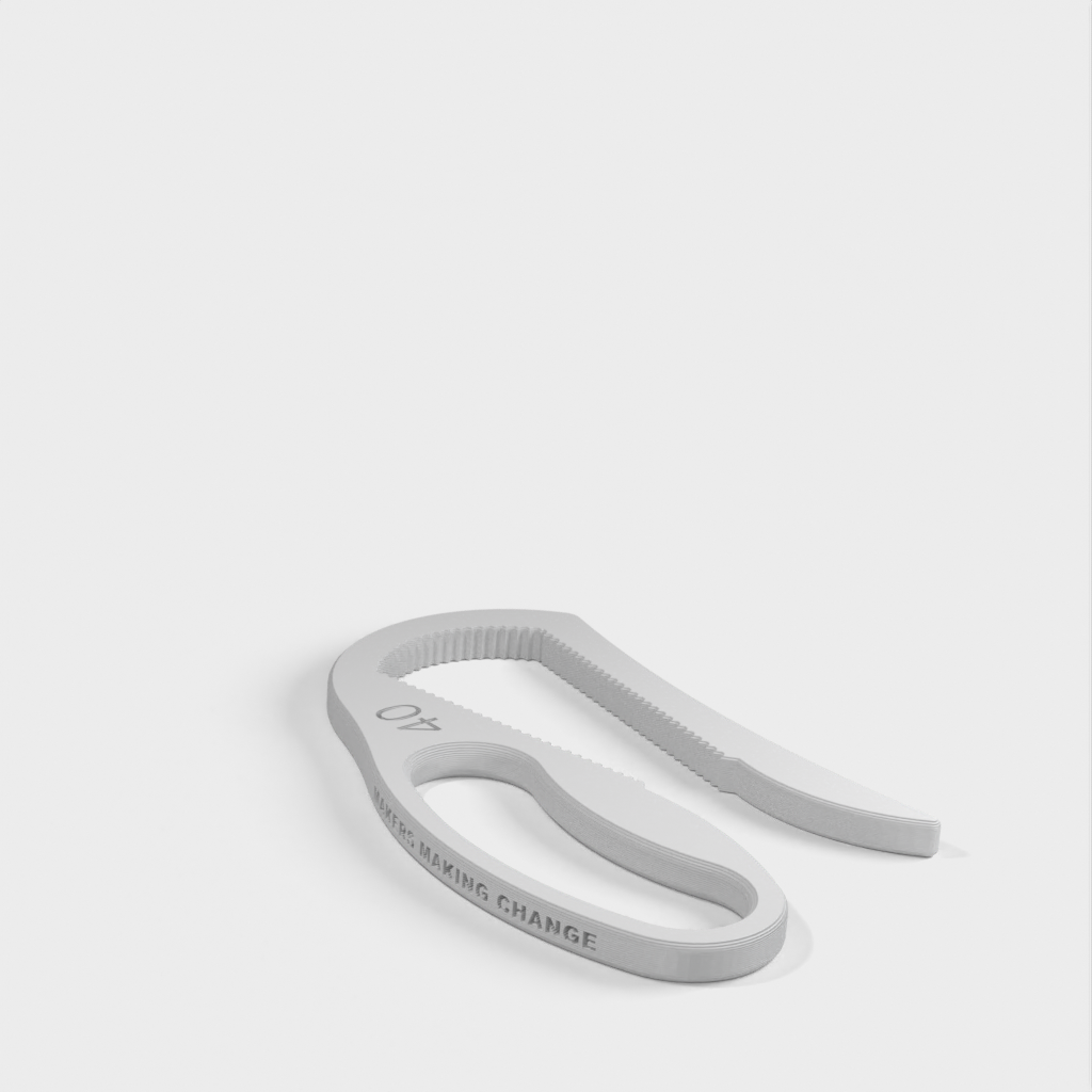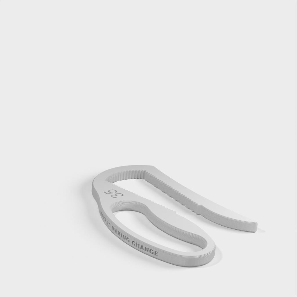 Deze flesopener is ontworpen om mensen met artritis, beperkte vingerbehendigheid of andere handicaps te helpen bij het openen van standaard waterflesdoppen (⌀ 30 mm of 1,18 in). Het biedt een groot grijpoppervlak en knijpt met weinig druk in de doppen van standaard waterflessen, zodat gebruikers de doppen van waterflessen kunnen verwijderen of vastschroeven. Hij heeft ook een vernauwde functie die kan helpen om de trekkracht van een blikje te openen. Hij kan worden gebruikt op verschillende flessen en doppen, waaronder popflessen van alle formaten (355 ml tot 2 liter), waterflessen van alle formaten (355 ml tot 2 liter), melkpakken van 2 liter, sappakken van 2 liter en nog veel meer.
