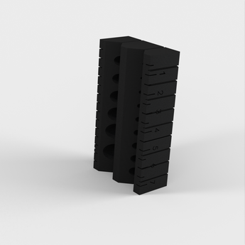 Het ontwerp omvat 15 gaten in gangbare boorbitmaten van 1 tot 10 mm. De markeringen op de zijkanten maken het gemakkelijk om een correcte uitlijning te garanderen.