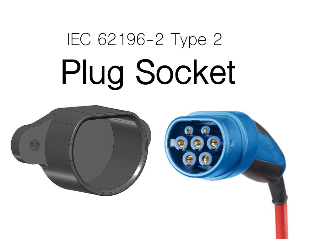 Eenvoudige en robuuste ophanging voor een type 2 stekker/laadkabel "Plug Socket". De ophanging past op het uiteinde van de kabel dat in het laadstation wordt gestoken.