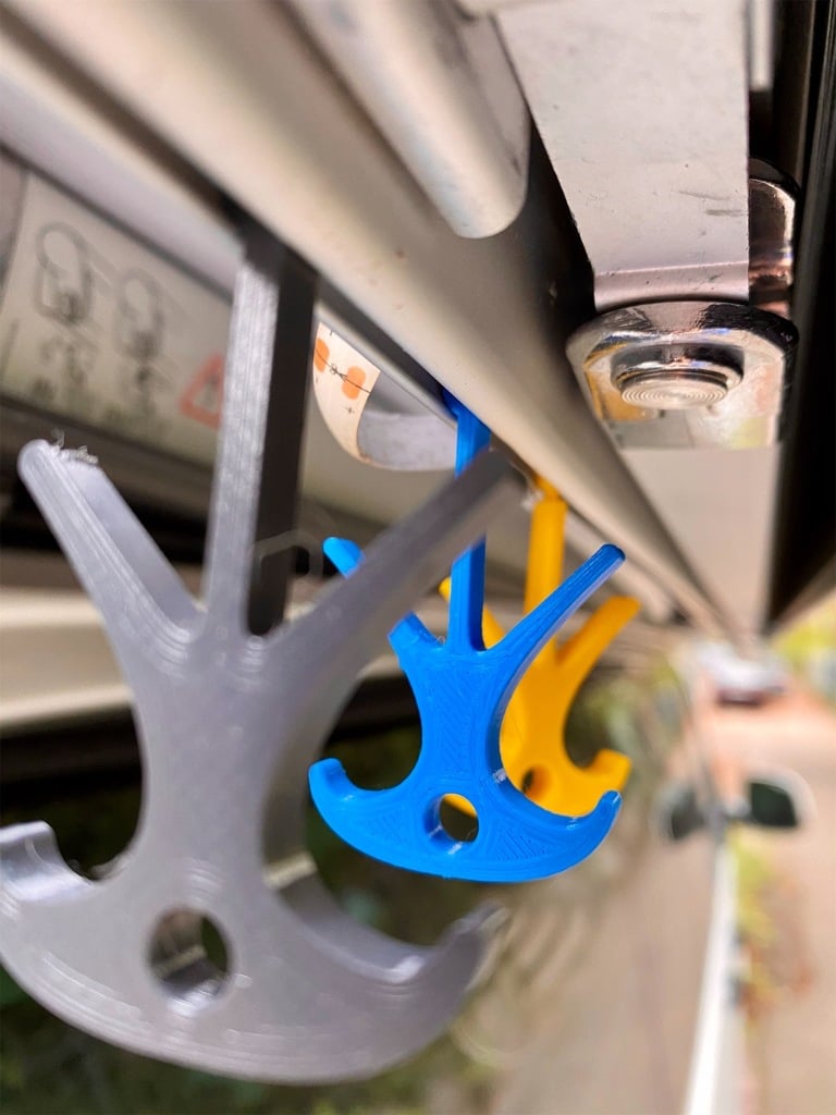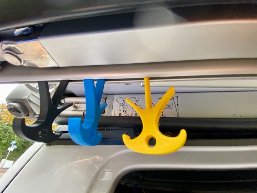 Dit is een haak voor de buis op de originele VW T5 en T6 luifel (Thule Omnistor 5102). De haak past waarschijnlijk ook op andere pijpleidingen. Er zijn zes verschillende versies: met stangen en ballen (roterend) en scherpe, schuine en afgeronde randen.