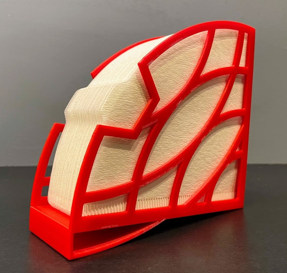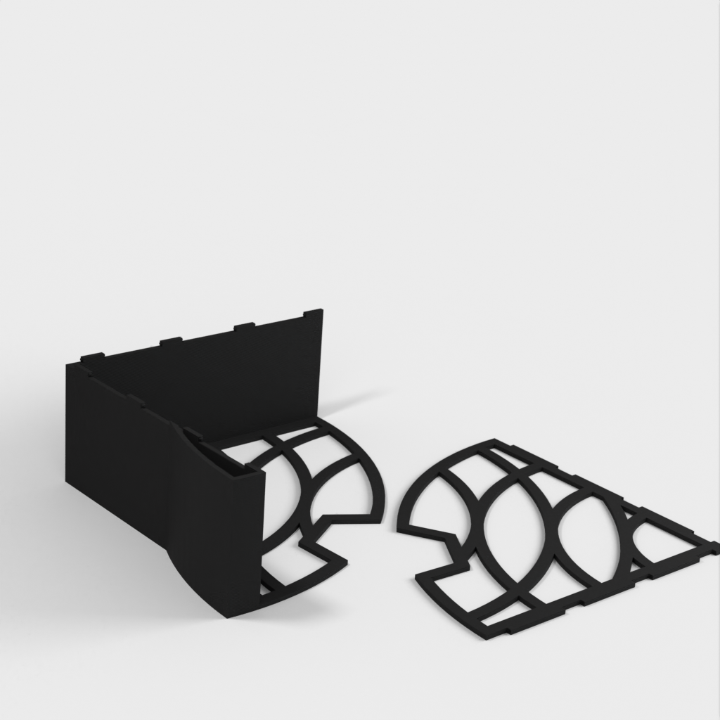 Dit is een eenvoudige houder voor Hario V60-2 koffiefilters. Het kan zonder steun worden bedrukt en er is geen lijm nodig voor de montage. Het Hario V60-2 filter kan eenvoudig in de houder worden geplaatst, waardoor uw keuken netter en gestroomlijnder wordt.
