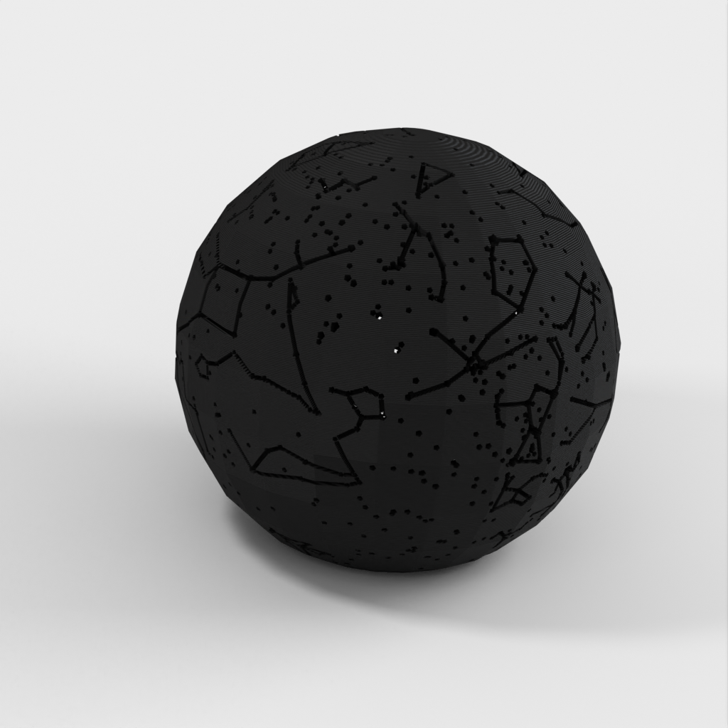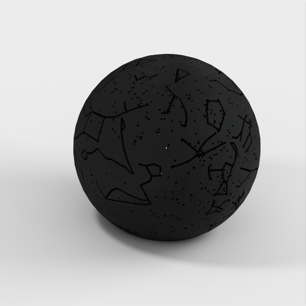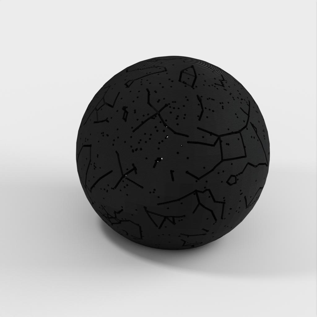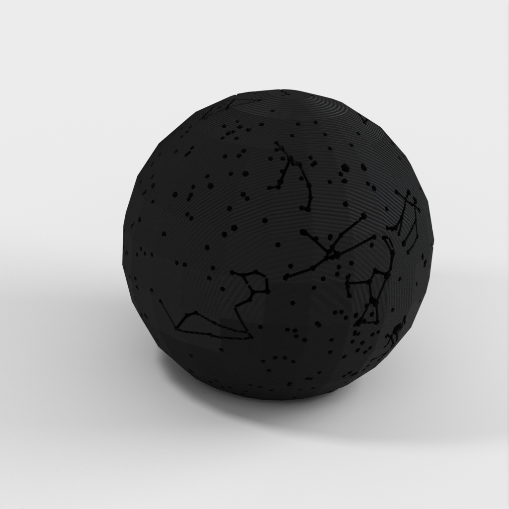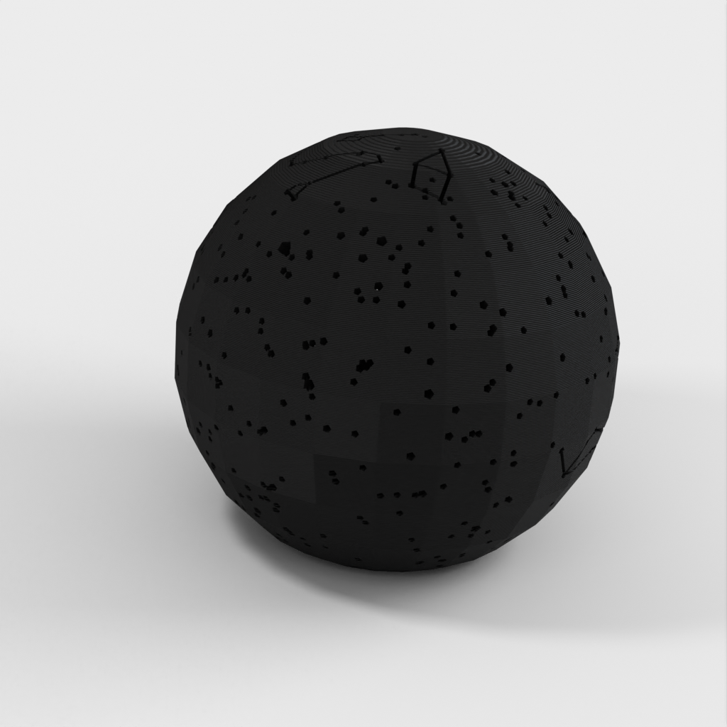 Dit product is een uitbreiding op de Celestial Sphere-modellen en kan STL-bestanden voor een hemelbol genereren. Met Openscad kun je veel parameters wijzigen en een 3D-model van de hemelbol maken, dat meer dan 1700 van de helderste sterren en tot 50 sterrenbeelden kan bevatten. Het model bevat ook plannen voor een equatoriale montering, compleet met voorziening voor LED-verlichting in de bol.