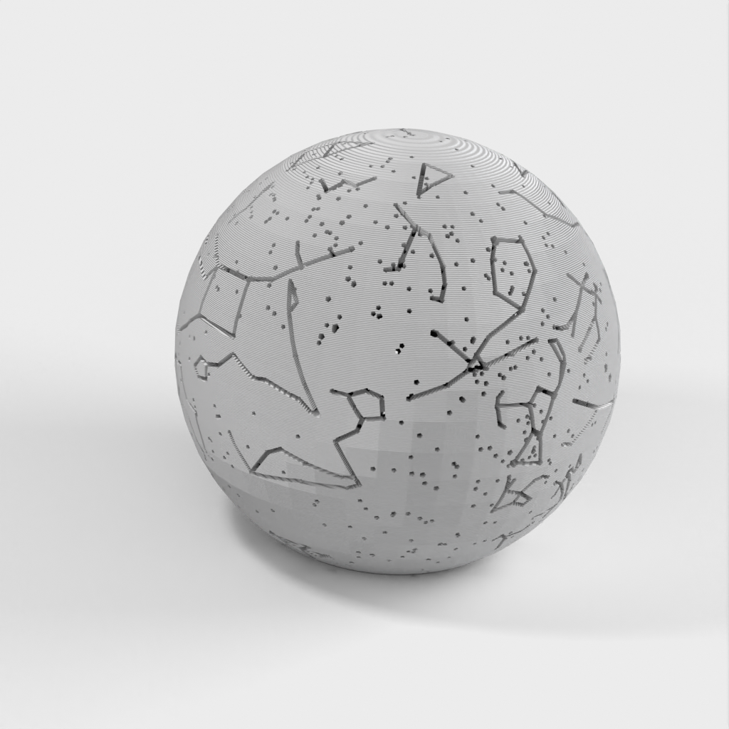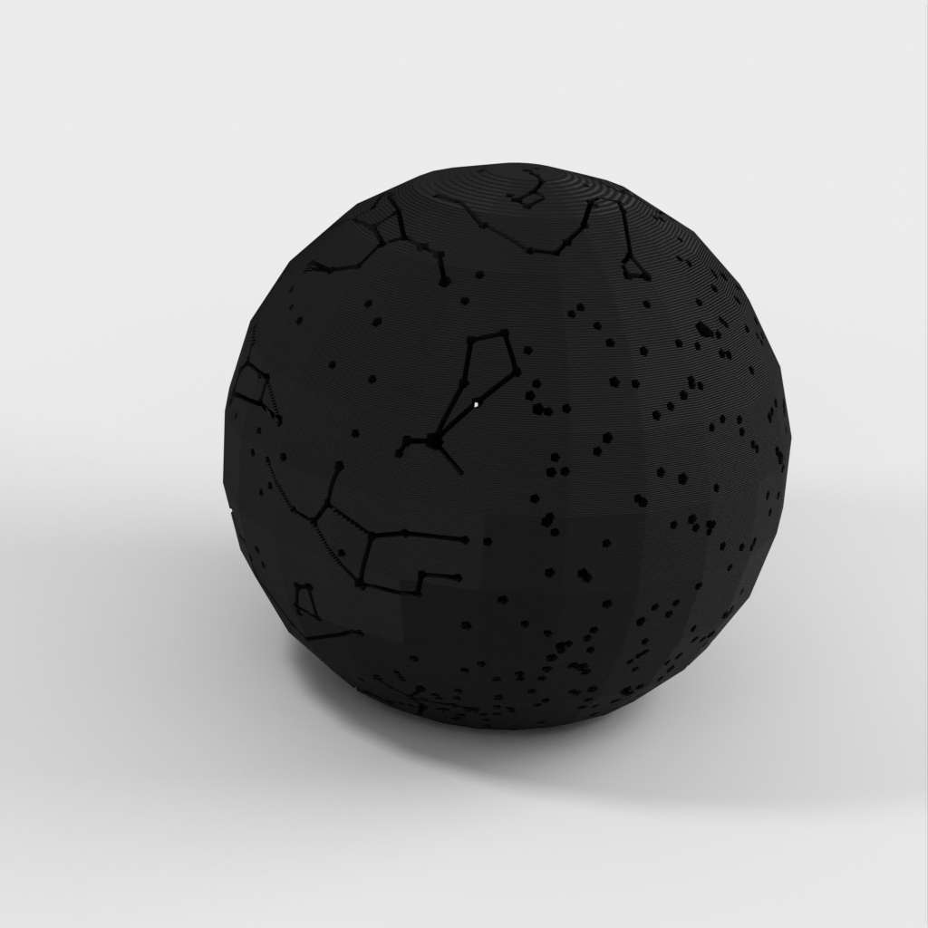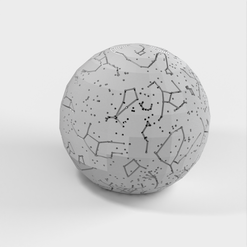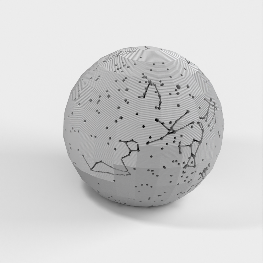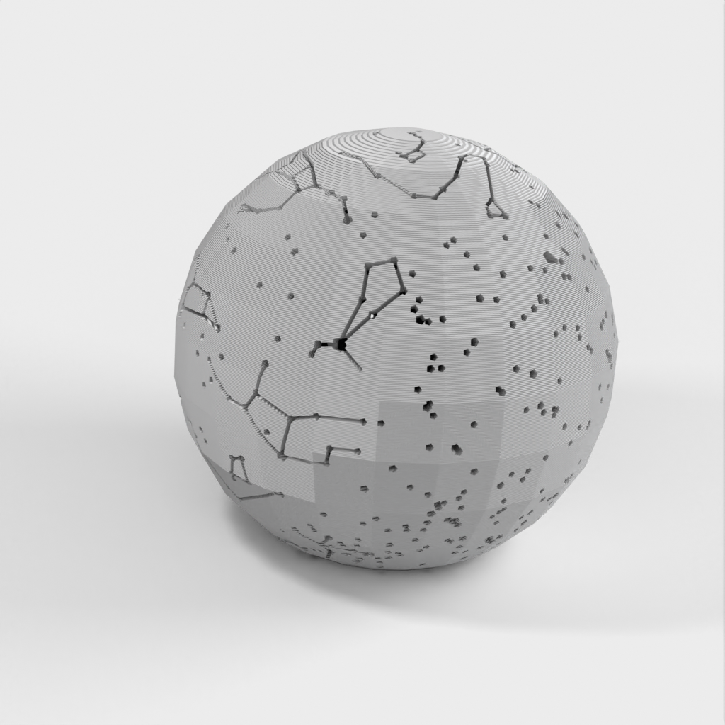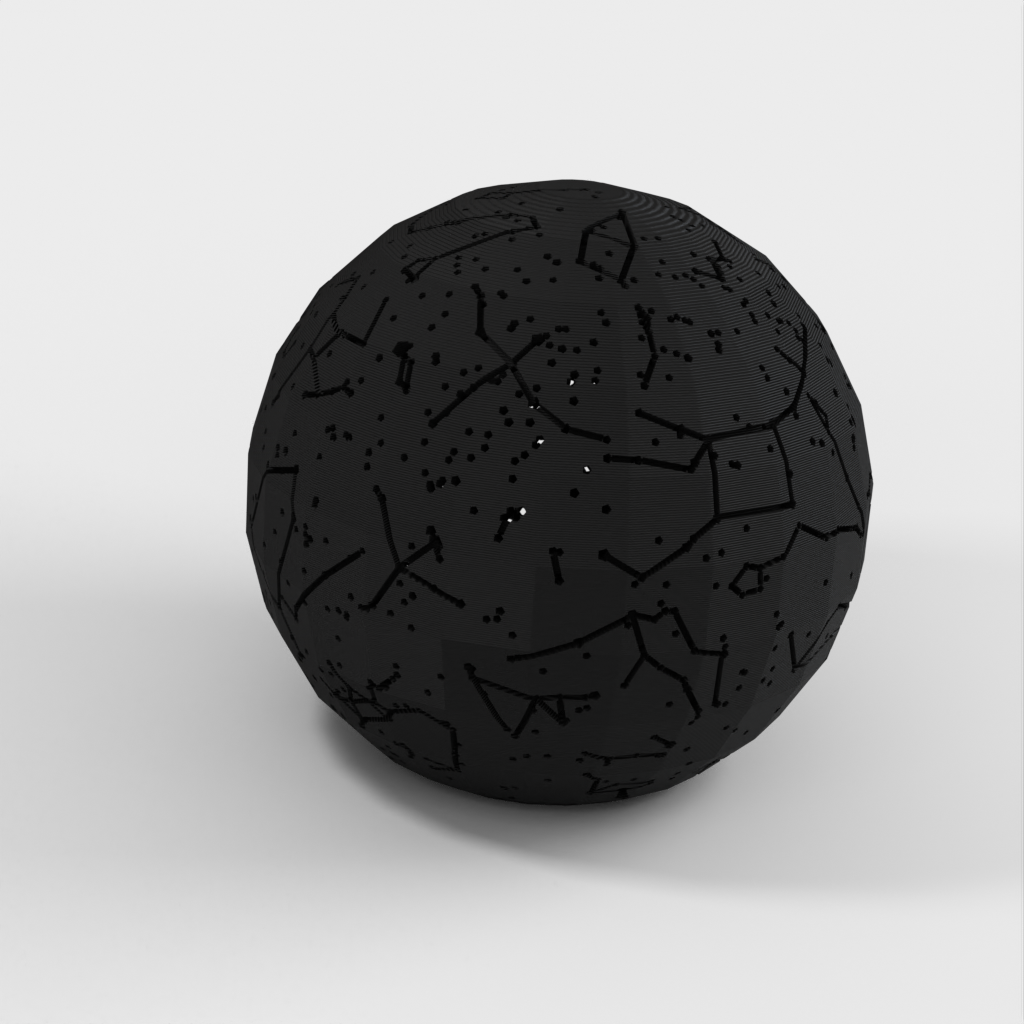 Dit product is een uitbreiding op de Celestial Sphere-modellen en kan STL-bestanden voor een hemelbol genereren. Met Openscad kun je veel parameters wijzigen en een 3D-model van de hemelbol maken, dat meer dan 1700 van de helderste sterren en tot 50 sterrenbeelden kan bevatten. Het model bevat ook plannen voor een equatoriale montering, compleet met voorziening voor LED-verlichting in de bol.