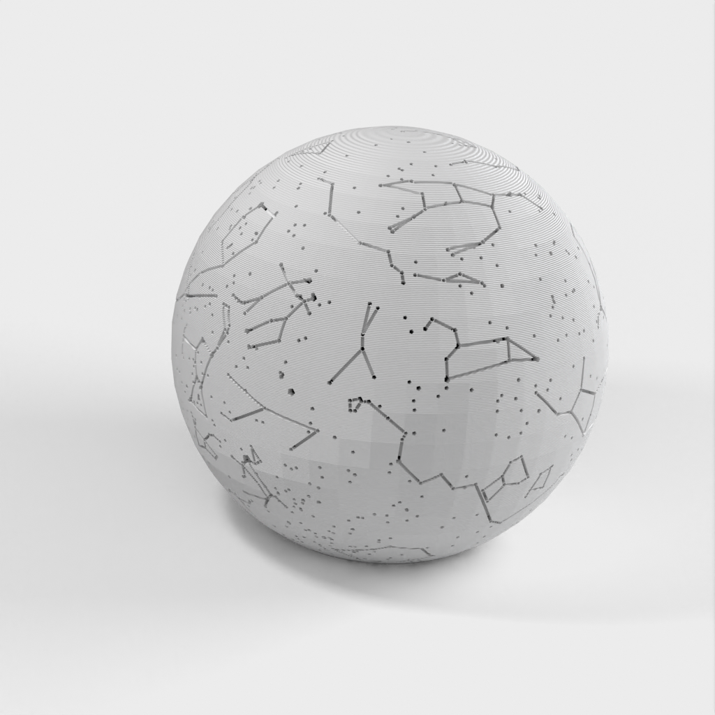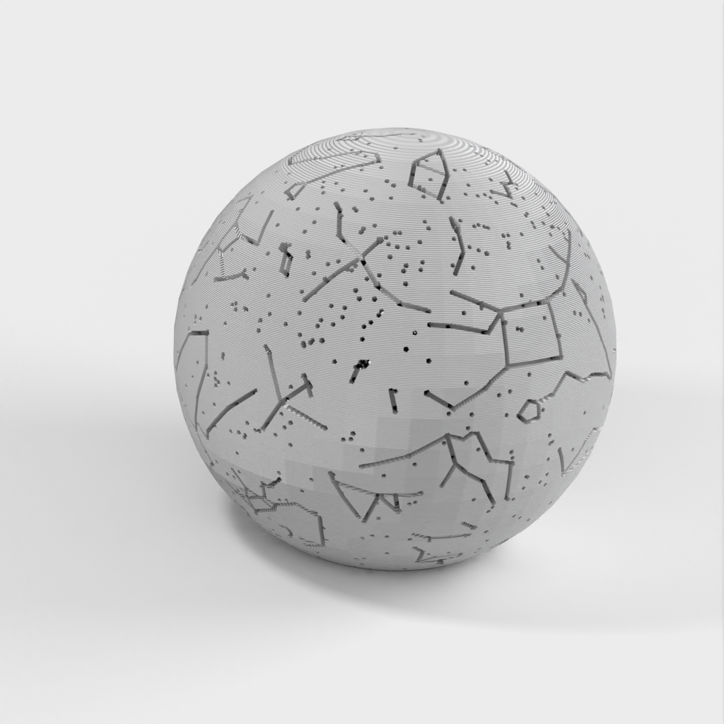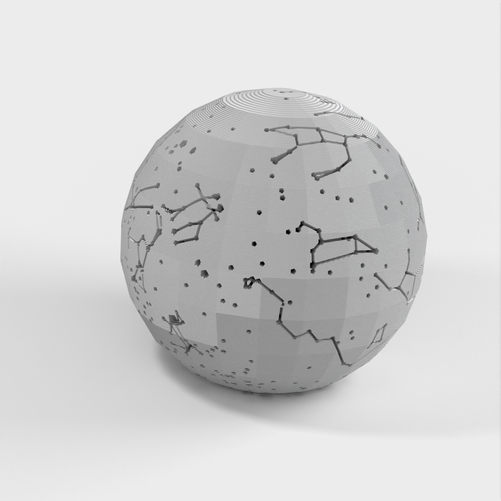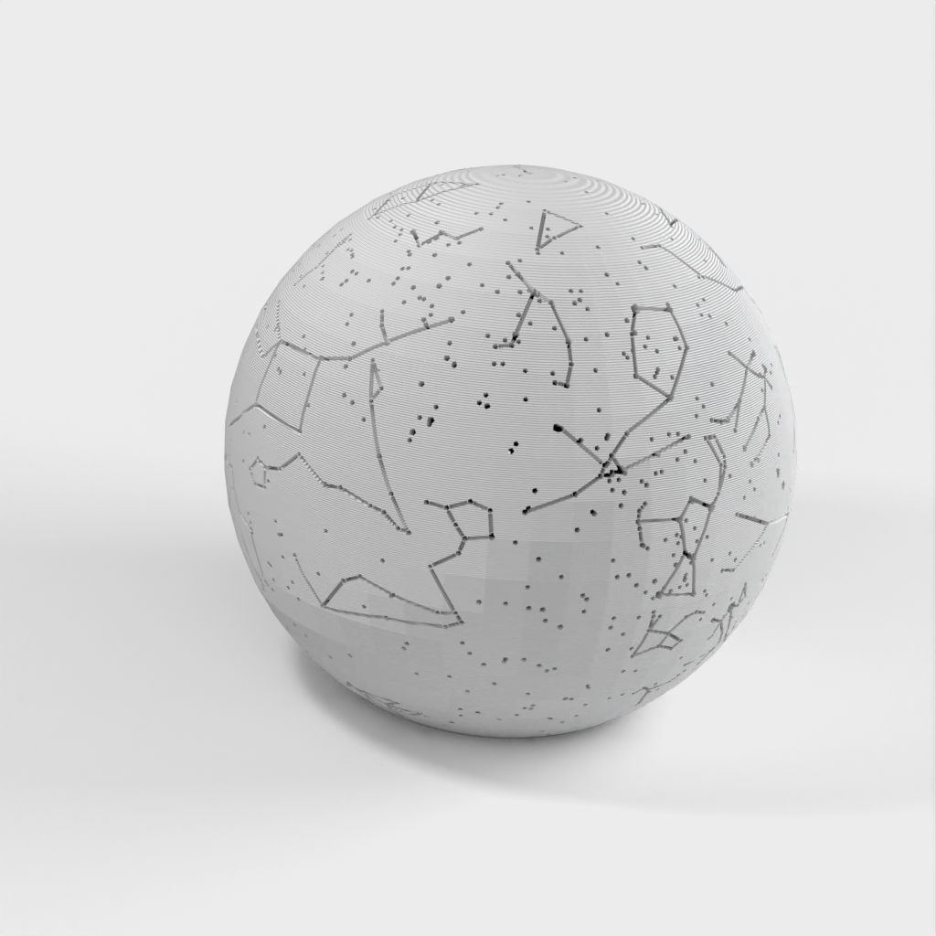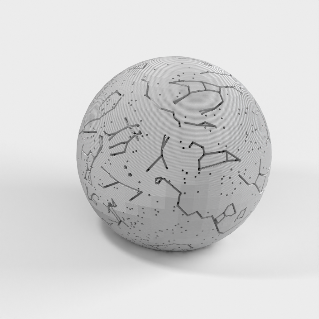 Dit product is een uitbreiding op de Celestial Sphere-modellen en kan STL-bestanden voor een hemelbol genereren. Met Openscad kun je veel parameters wijzigen en een 3D-model van de hemelbol maken, dat meer dan 1700 van de helderste sterren en tot 50 sterrenbeelden kan bevatten. Het model bevat ook plannen voor een equatoriale montering, compleet met voorziening voor LED-verlichting in de bol.