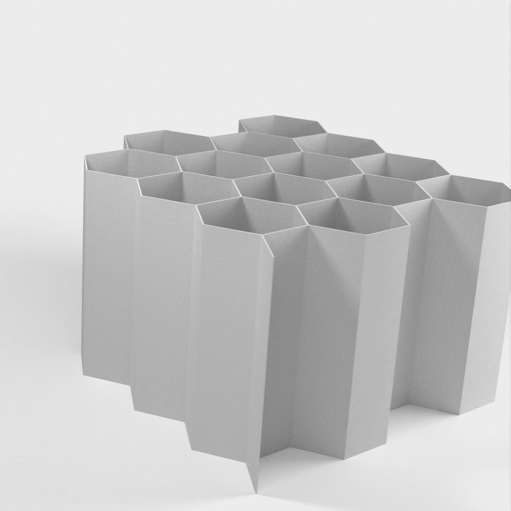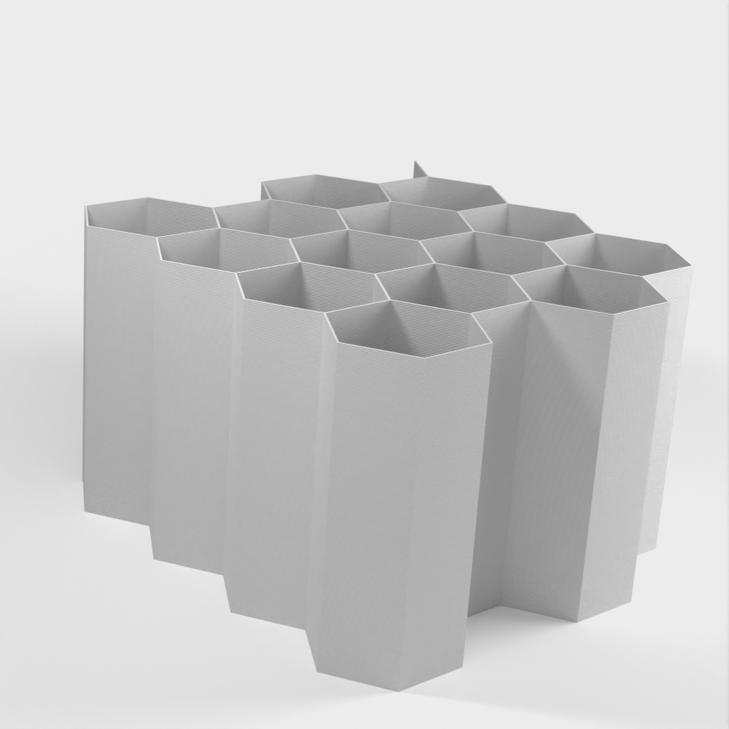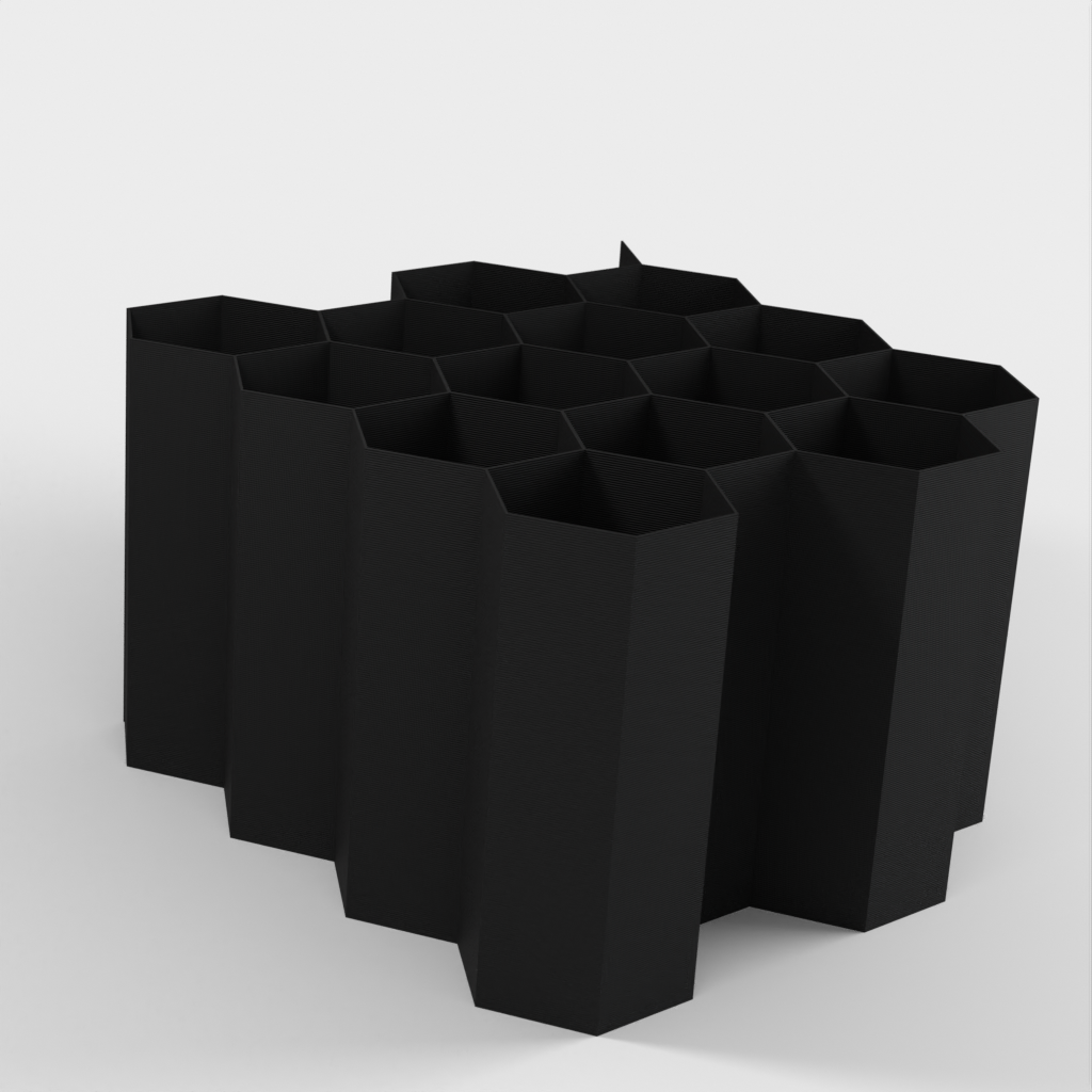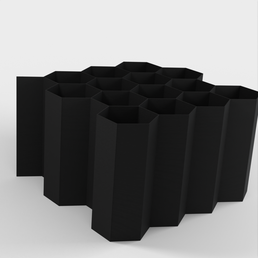 De Hex Cable Organiser is een modulair kabelopbergsysteem dat kabels snel vindt en opbergt zonder dat ze in de war raken. Kabels kunnen netjes worden opgeborgen in de zeshoekige sleuven. Er kunnen eenvoudig meer kabelopbergruimtes worden toegevoegd.