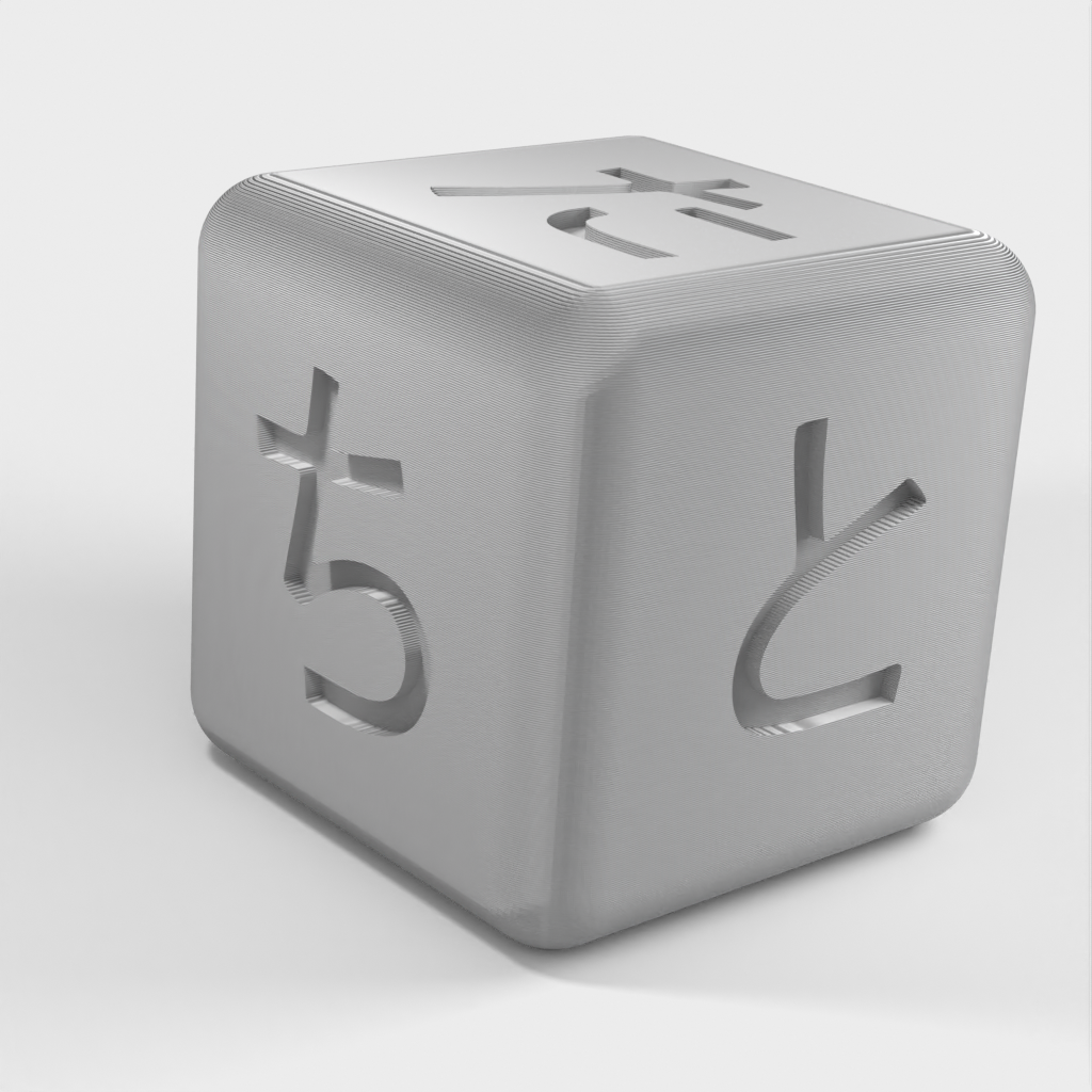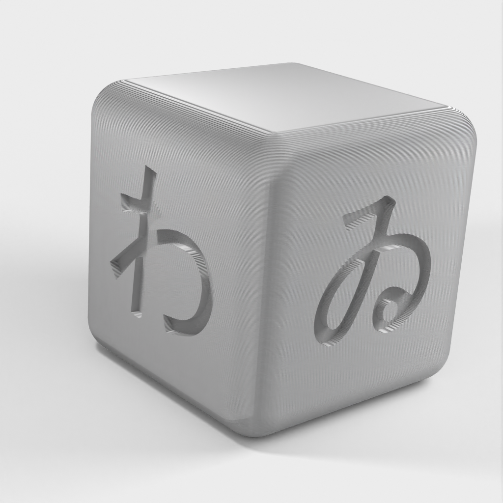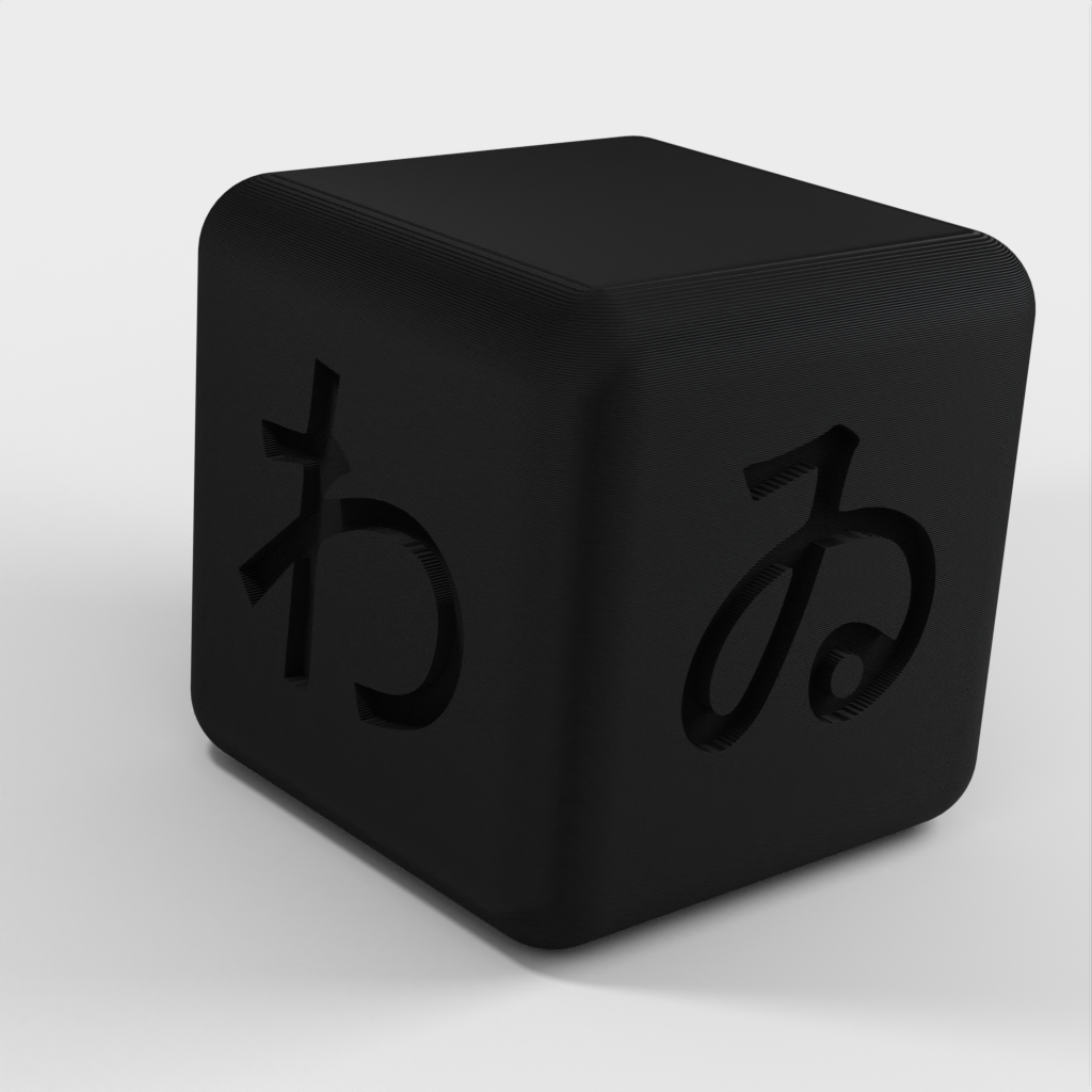 Dit zijn Hiragana dobbelstenen, educatief speelgoed om het Japanse alfabet, hiragana, te leren. De blokjes zijn 2 cm x 2 cm x 2 cm en kunnen naar wens worden geschaald. Ideaal als zeszijdige flashcard, de meeste hebben 5 zijden met een symbool erop en een platte onderkant. Behalve dat het een leuk spelletje is, helpt het je ook bij het basisbegrip van de Japanse taal.