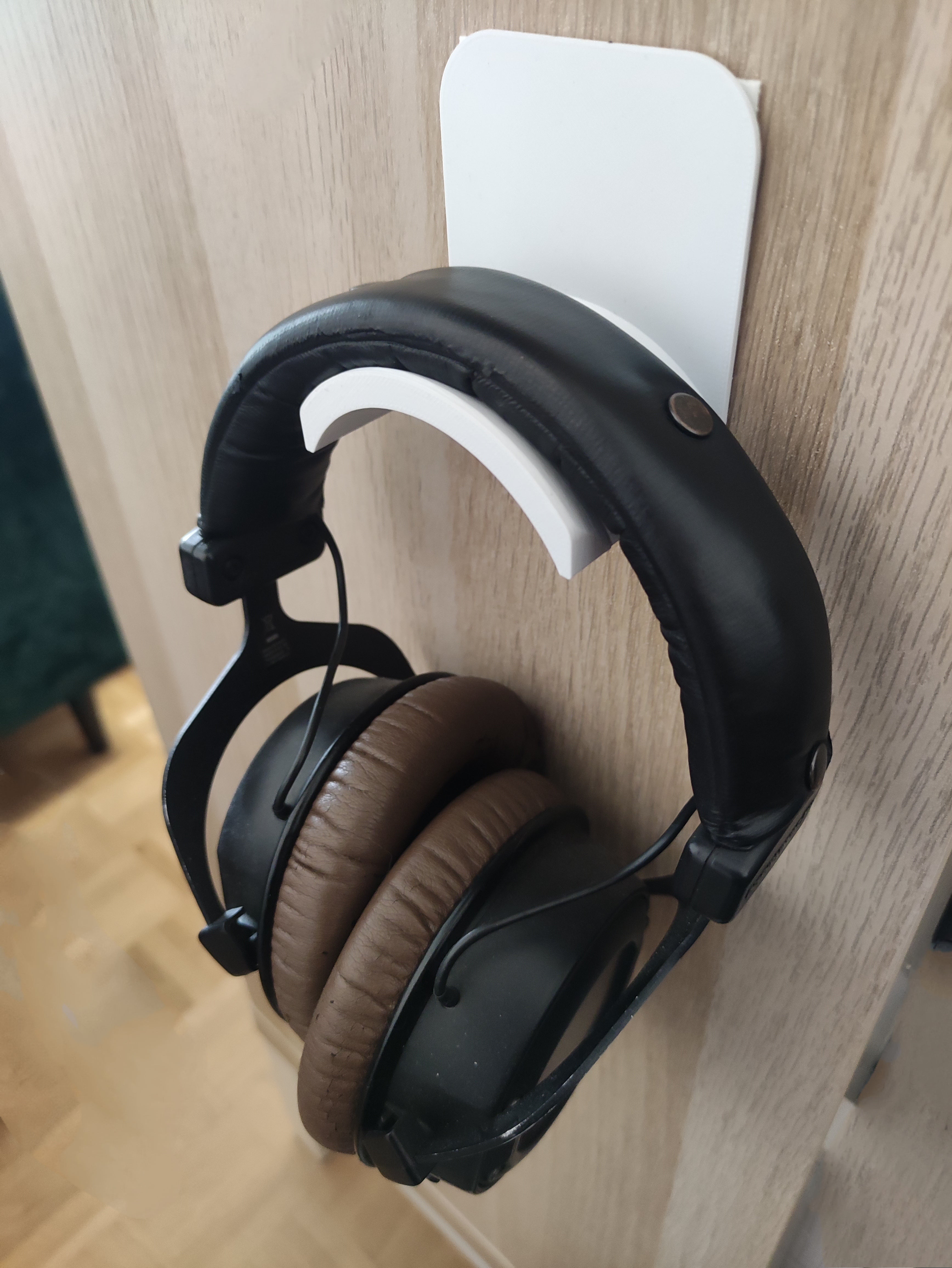 - Universele hoofdtelefoonhouder die geschikt is voor verschillende maten en typen, inclusief bredere modellen zoals Beyerdynamic.