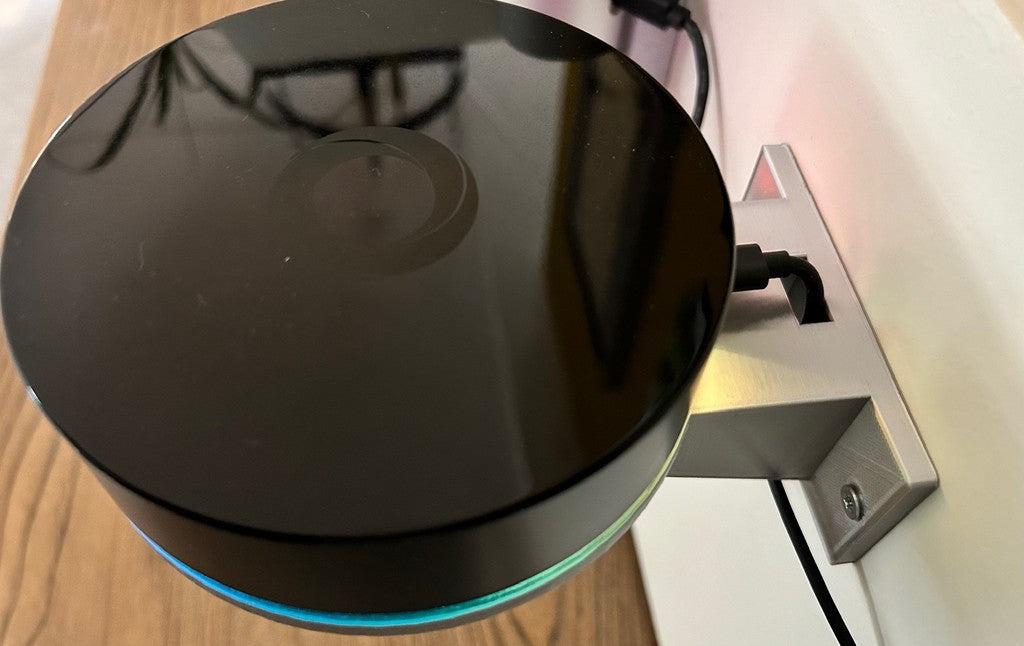 Dit is een horizontale wandmontage voor de Athom Homey Pro 2023 (hockey puck-model). Het heeft een kabelgat aan de achterkant, zodat je de kabel van onderaf kunt leiden om het nog netter te maken.