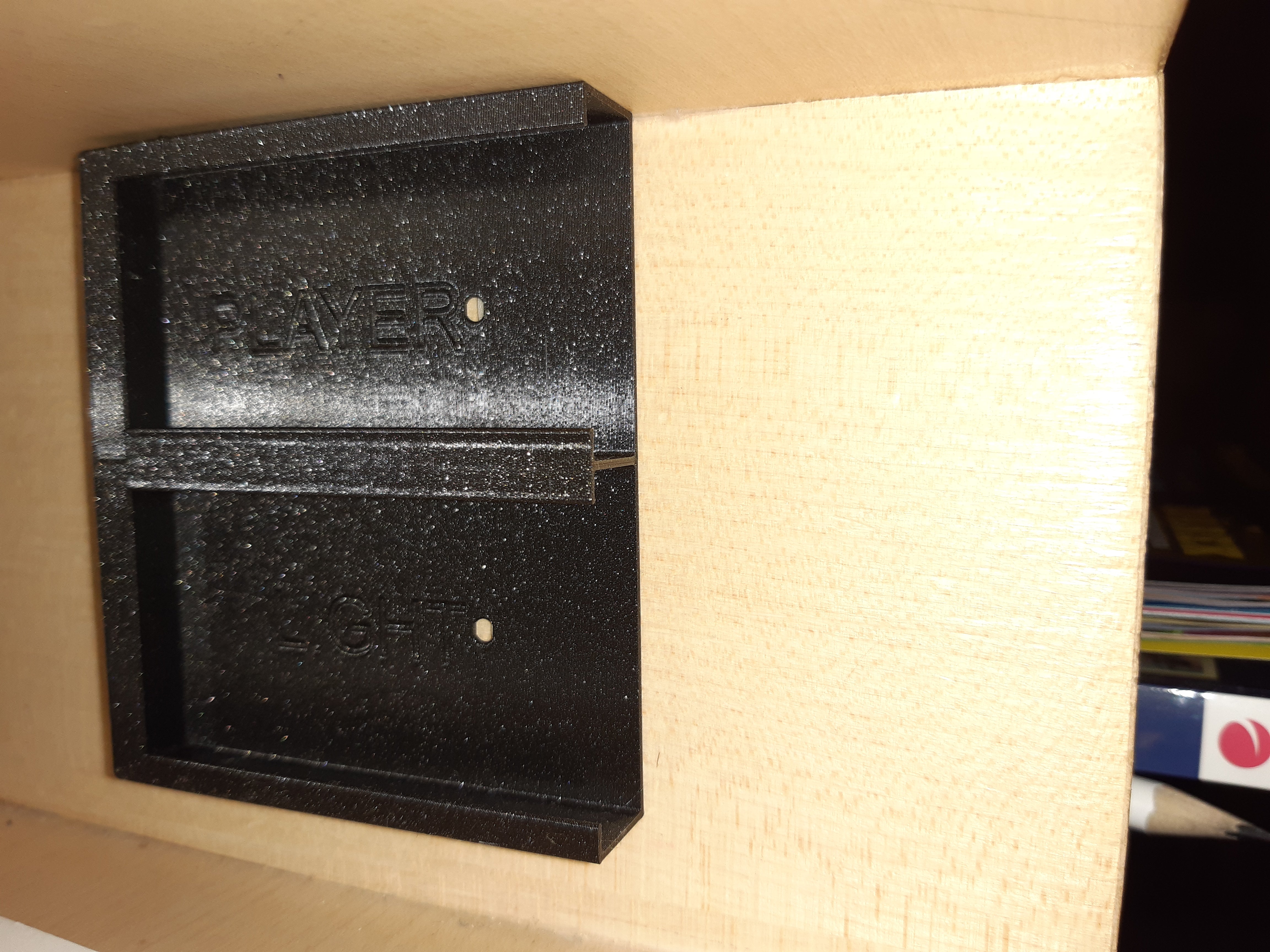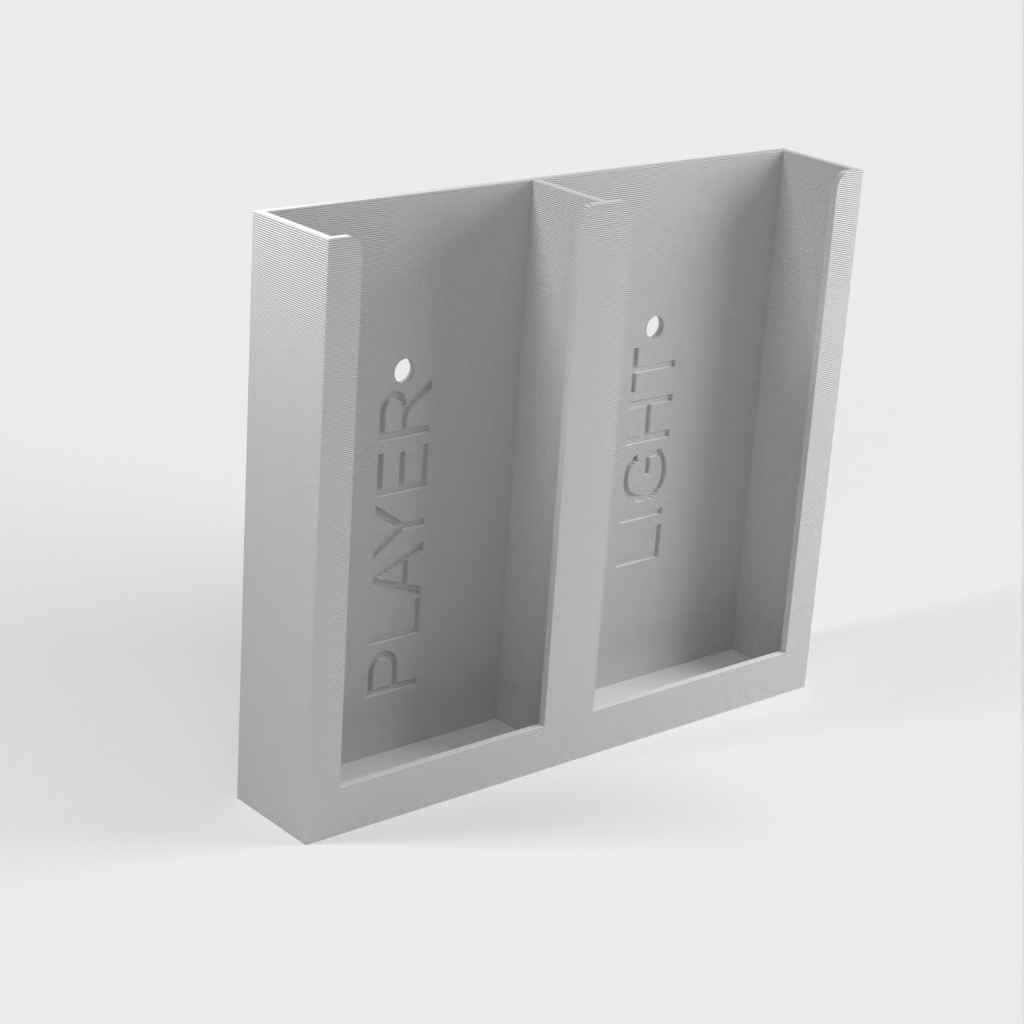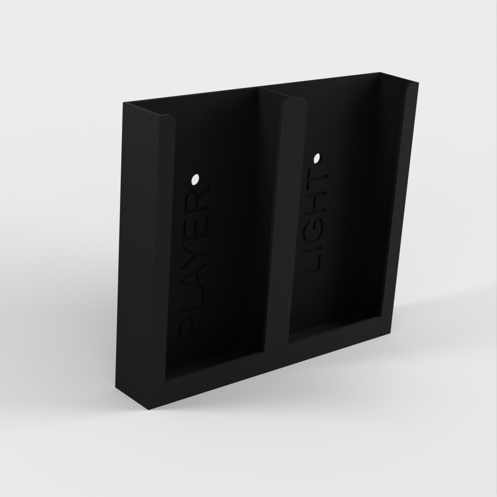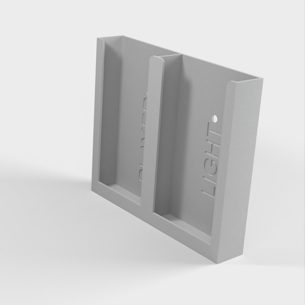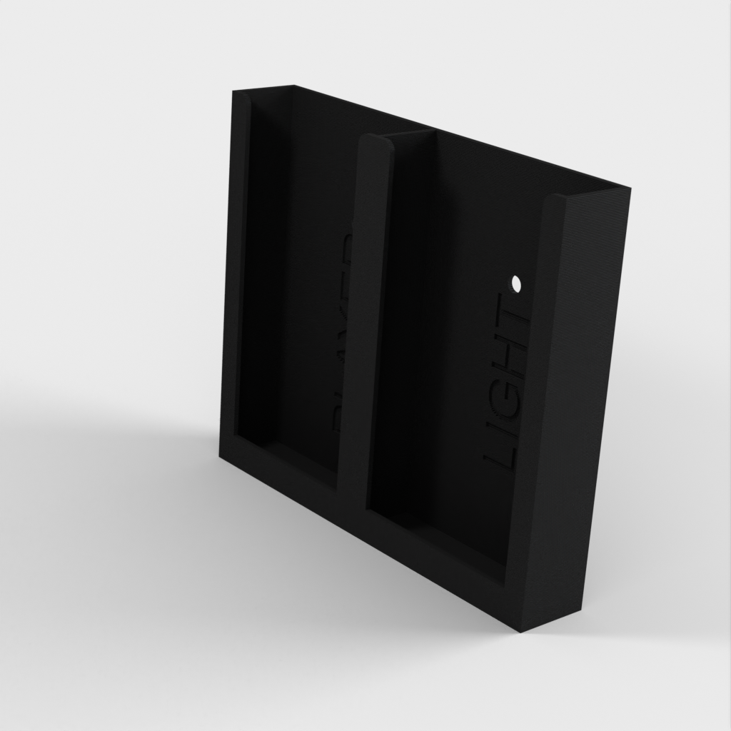 Dit is een eenvoudige houder voor 2 afstandsbedieningen. Hij kan zowel verticaal als horizontaal worden geïnstalleerd. Je kunt hem bevestigen met twee schroeven of met dubbelzijdige tape, wat het beste past in jouw huis.