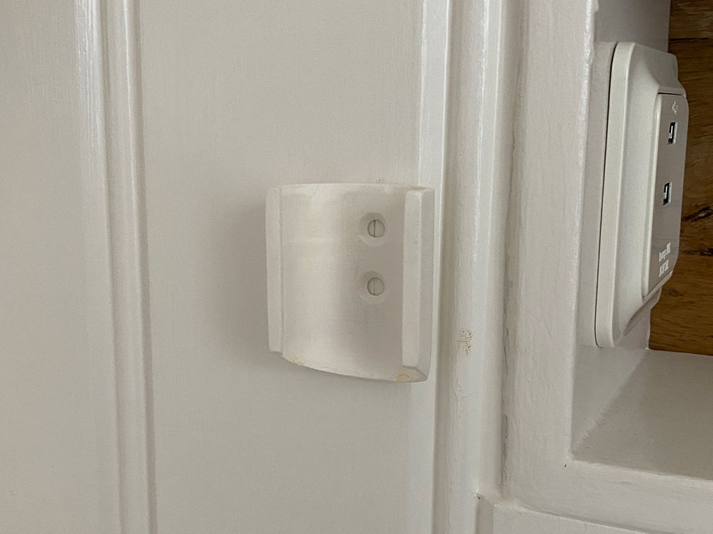 Houder voor een Chromecast met Google TV-afstandsbediening. U plaatst de afstandsbediening door deze van bovenaf naar binnen te schuiven. Het onderste deel is breder om te voorkomen dat hij erdoorheen glijdt. Dit maakt het gemakkelijk om de afstandsbediening te plaatsen en te verwijderen. De houder is ontworpen om aan de muur te worden gemonteerd met schroeven of dubbelzijdige 3M-tape voor een robuuste en veilige montage.
