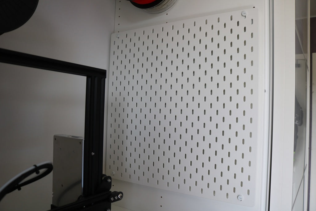 Wandmontage voor het ophangen van een Ikea Skådis in een Pax-kledingkast met behulp van de originele schroefgaten.
