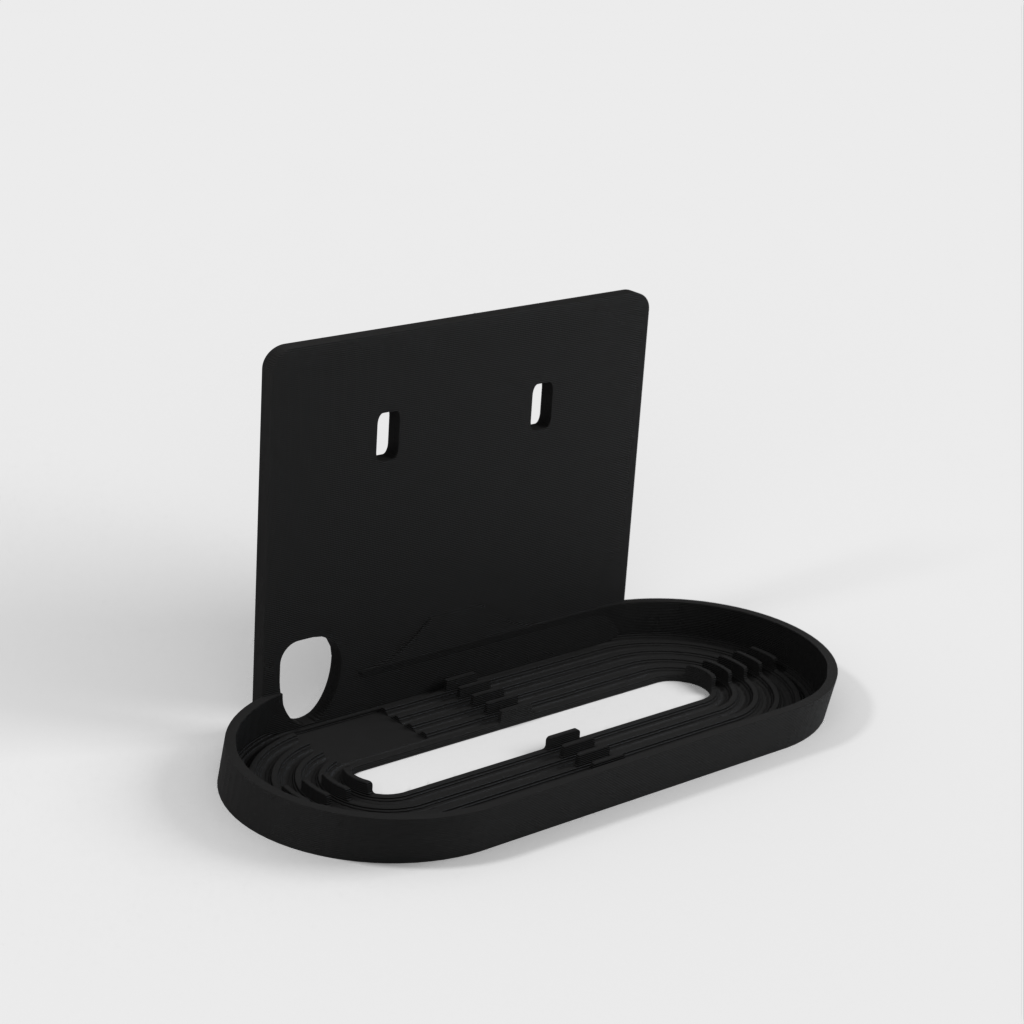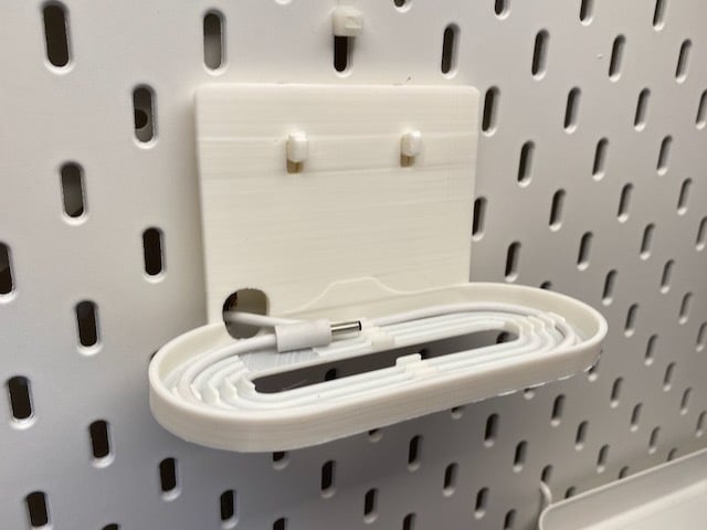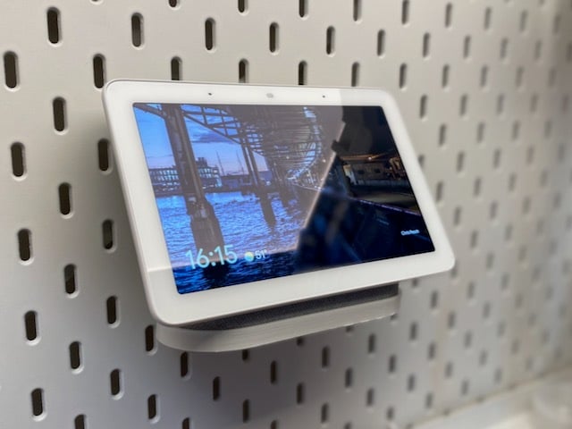 Eenvoudige montageoplossing voor Nest / Google Home Hub voor IKEA Skadis-borden. De hub zit zo dicht mogelijk bij het bord en de kabel kan door een van de bestaande slots van Skadis worden geleid, waardoor er geen kabels zichtbaar zijn. Vereist twee universele haken voor een nette installatie.