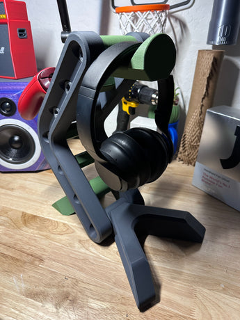 Verbeter uw gaming- of werkstation met deze functionele en stijlvolle hoofdtelefoonstandaard, geïnspireerd op industrieel design. Deze stevige standaard is gemaakt om een georganiseerde en esthetisch aantrekkelijke oplossing te bieden voor het opbergen van uw audioapparatuur en gamecontrollers. Of u nu een toegewijde gamer bent of gewoon uw hoofdtelefoon en controllers netjes op hun plaats wilt houden, deze standaard biedt voldoende ruimte en een stabiele basis.