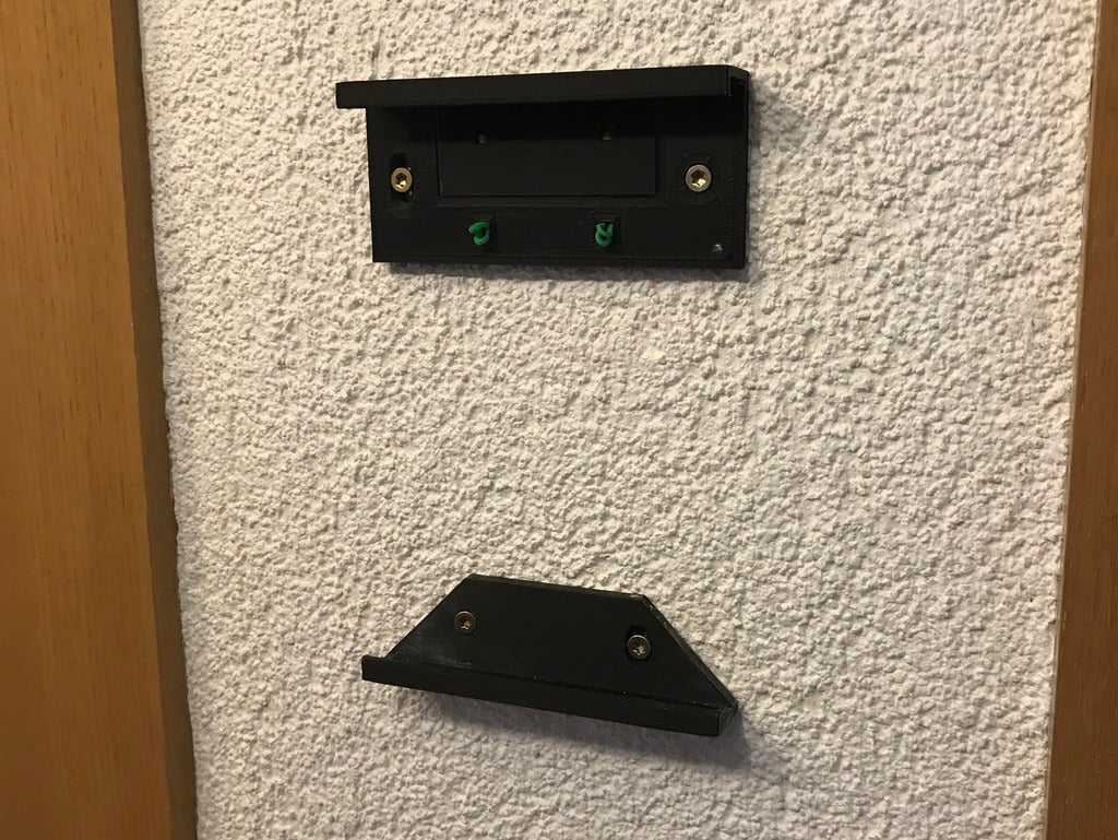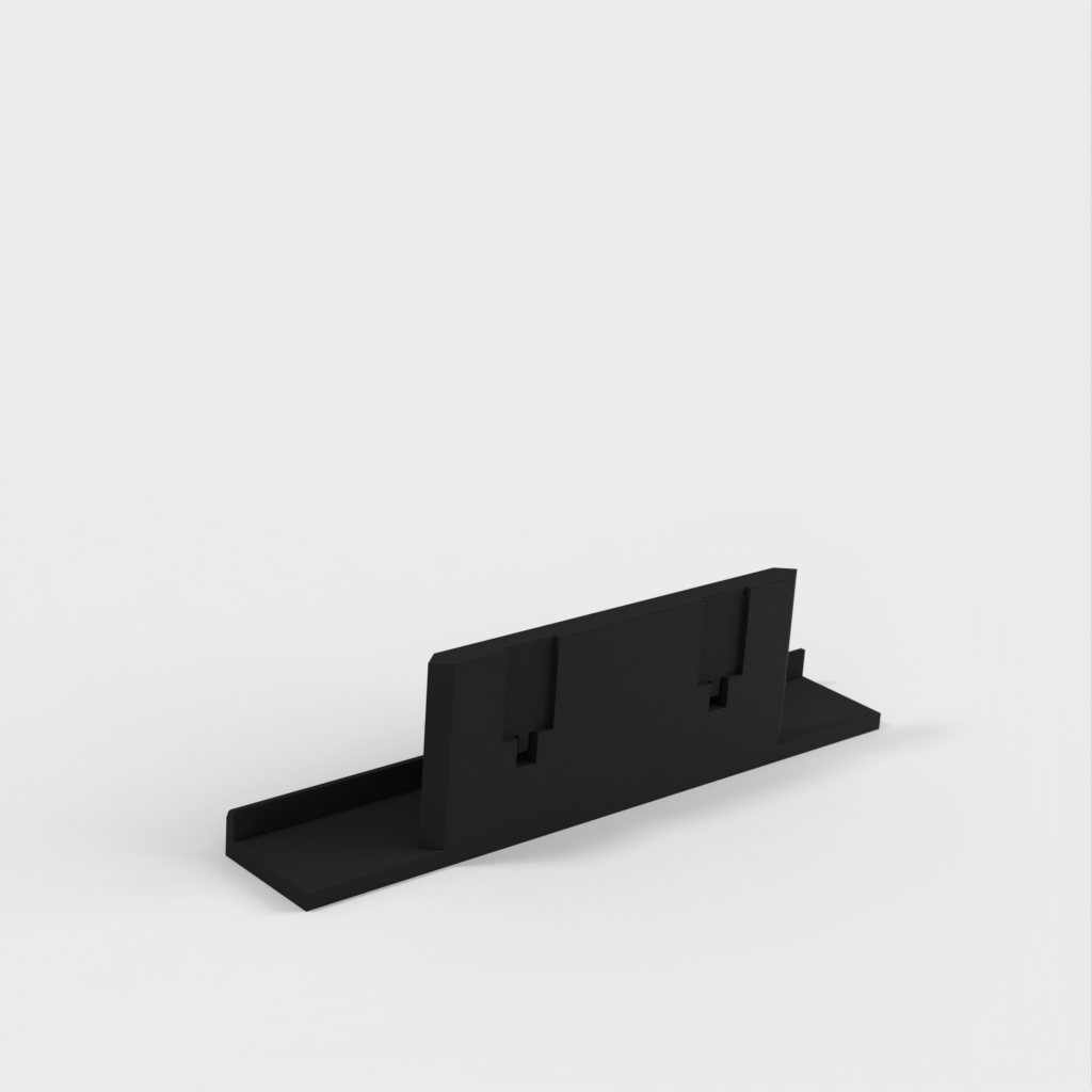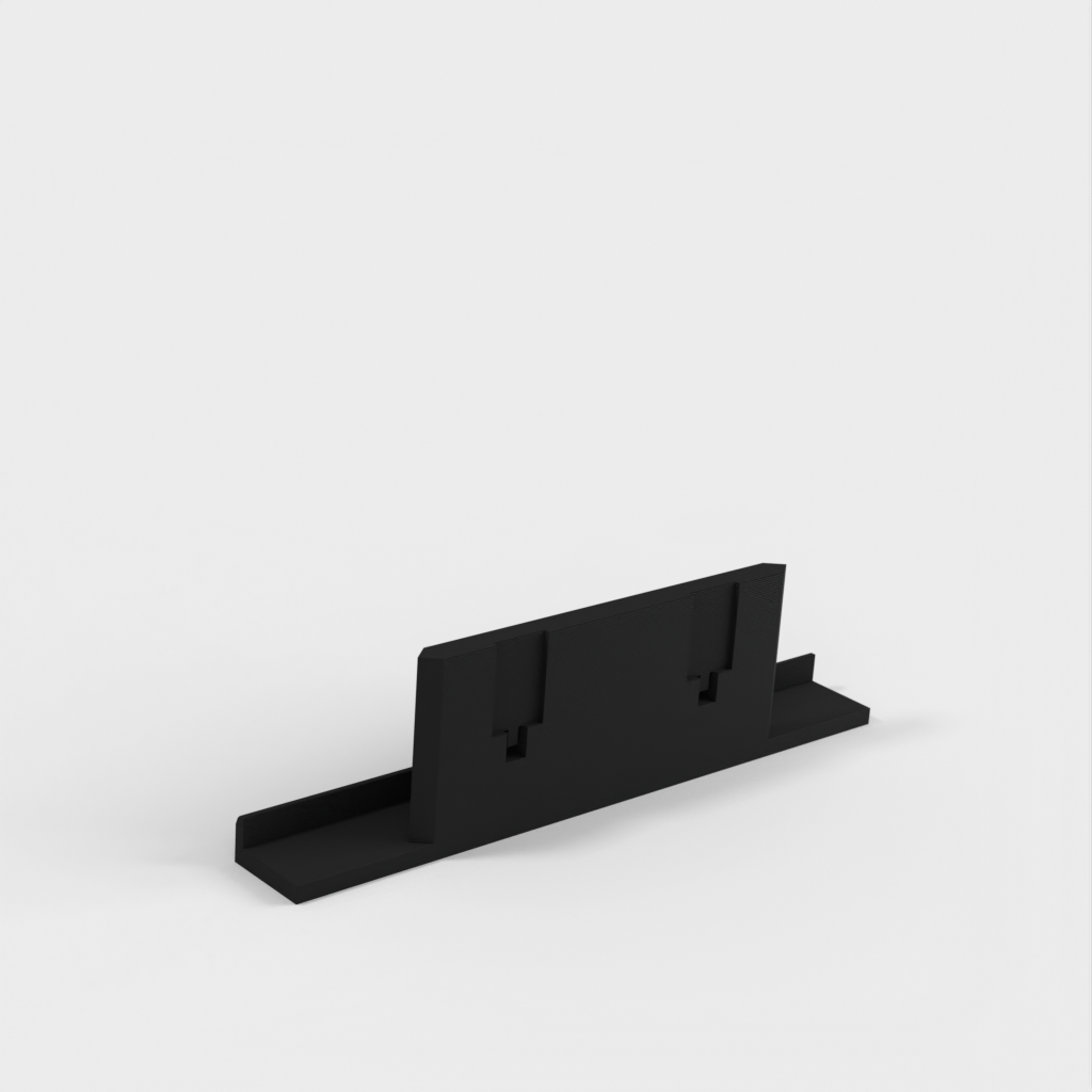 Robuuste wandmontage voor zowel iPad 1 & 2, ideaal voor uw FHEM-verwarmingsregeling. De eenvoudige en veilige plaatsing aan de muur zorgt ervoor dat u altijd toegang heeft tot uw verwarmingsregeling. Het is snel en eenvoudig om de iPad uit de houder te verwijderen door hem omhoog te schuiven. Voor de montage worden Loom Bands in de groene kleur gebruikt.