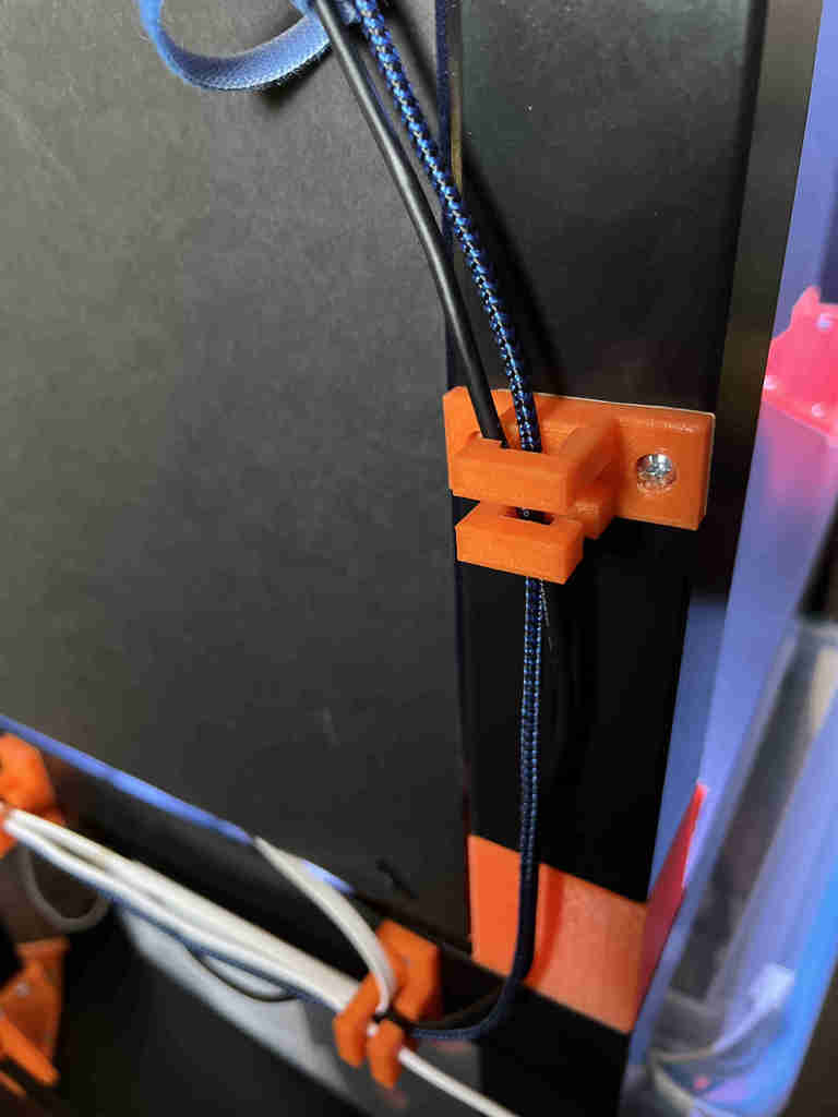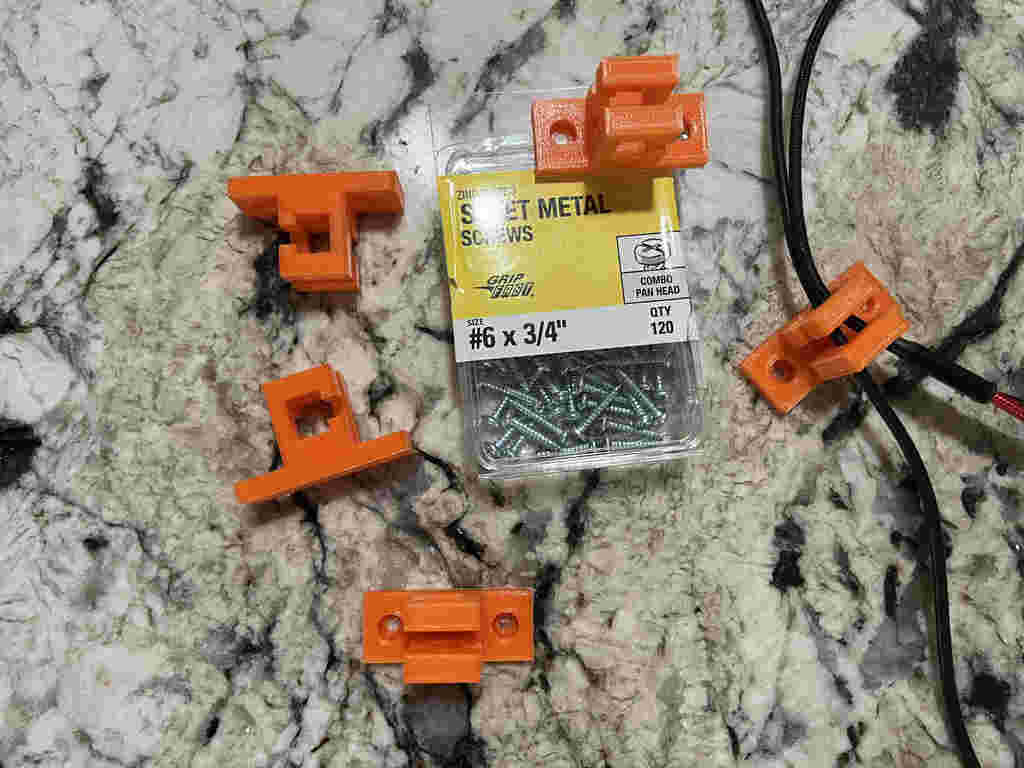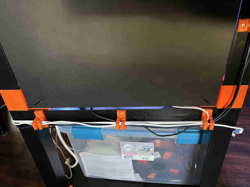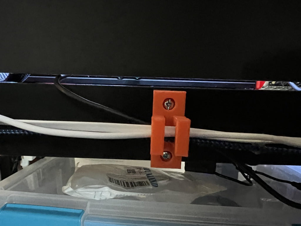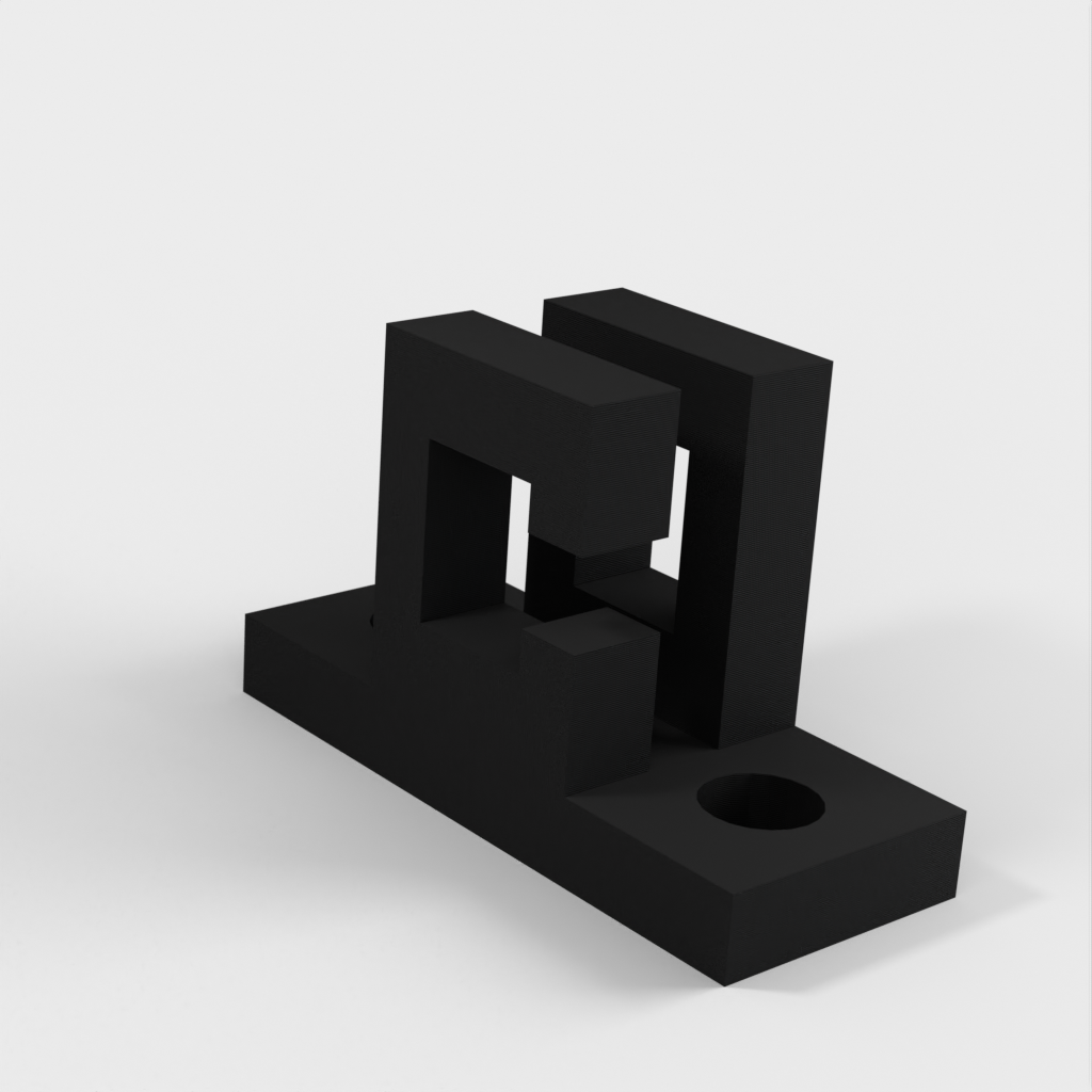 Dit is een kabelklem voor kabelbeheer, passend aan de zijkant van een IKEA LACK werkblad of poot. Hij helpt je kabels te ordenen en vermindert kabelwarboel op je werkplek.