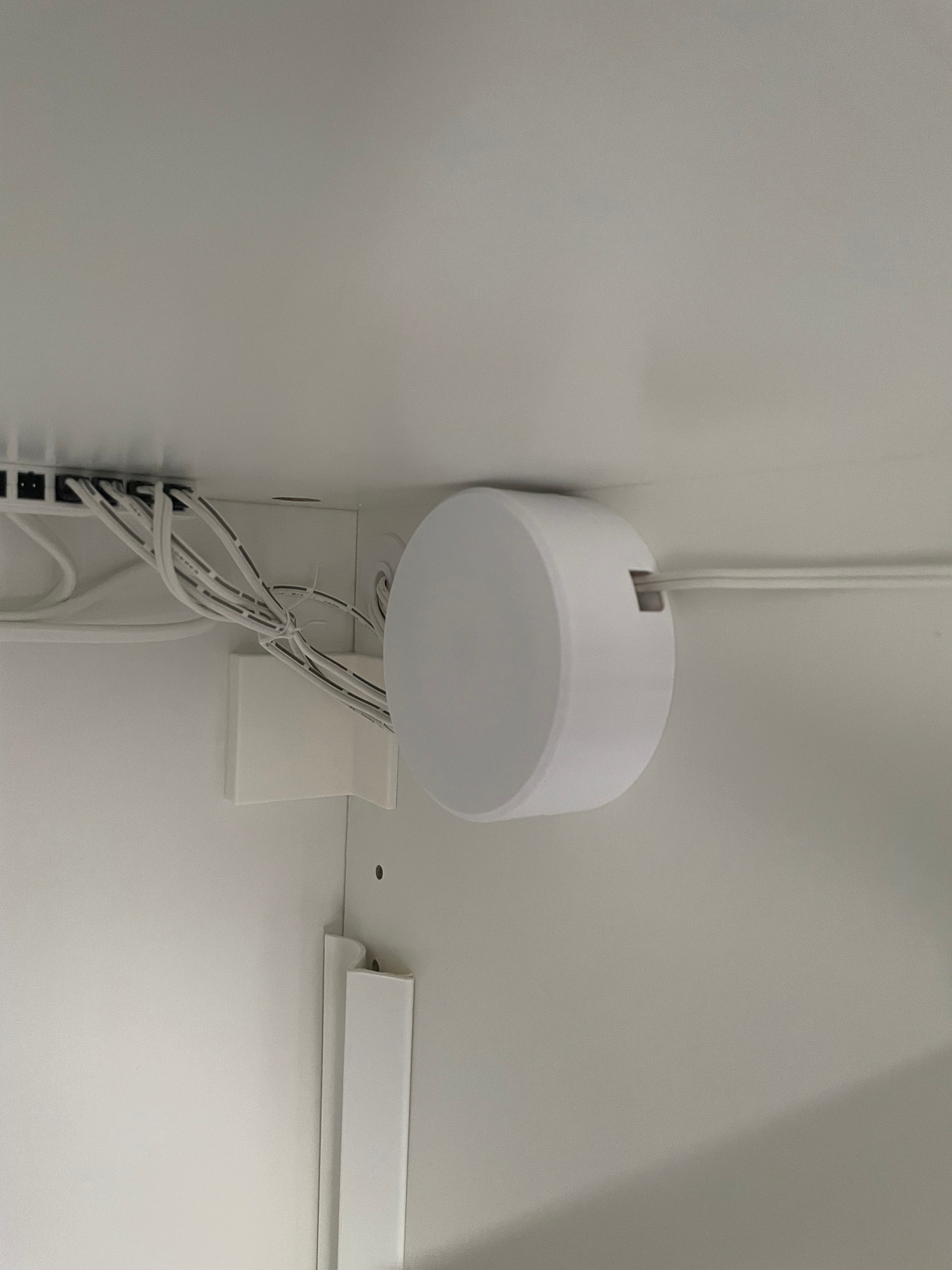Ronde kabelgoot voor permanente installatie. Dit product heeft een gat in het midden van de basis zodat het aan een muur kan worden bevestigd.
