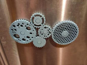Dit zijn leuke speelgoed tandwielmagneten voor op je koelkast, ontworpen voor kinderen om mee te spelen. De tandwielen blijven op hun plaats door een centrale as waarin de magneet zit. Er zijn twee maten: een met 20 tanden en een met 40 tanden. De 'schone' versie biedt de meeste flexibiliteit. Je kunt hem printen zonder boven- en onderlagen, waardoor de invulling zichtbaar blijft en je meteen een nieuw ontwerp hebt. De diameter van de magneet is 10 mm en 2,6 mm dik. Het magnetische deel heeft weinig ruimte en het gat is 11 mm in diameter en 3 mm dik. Het product is zo ontworpen dat kleine vingertjes niet bekneld raken in de tandwielen. Veel plezier!