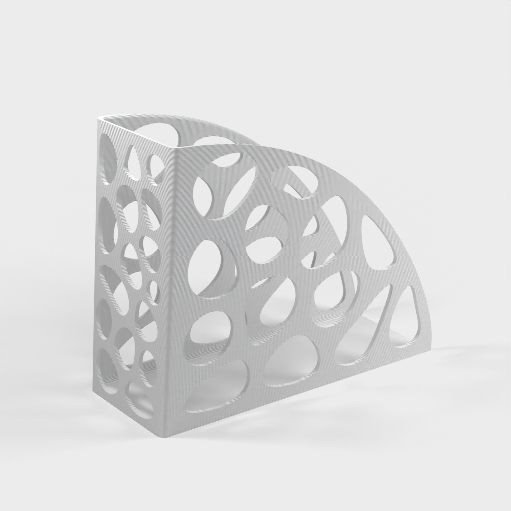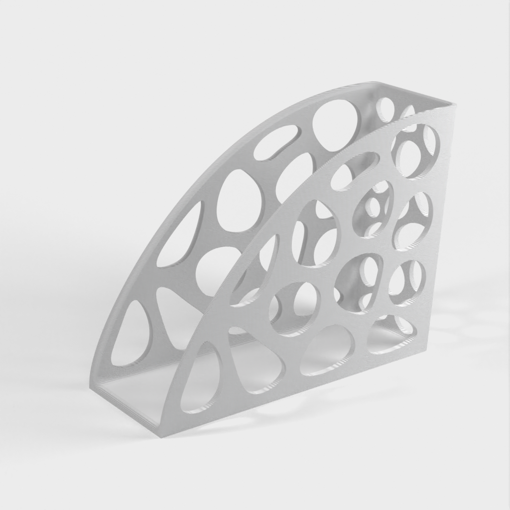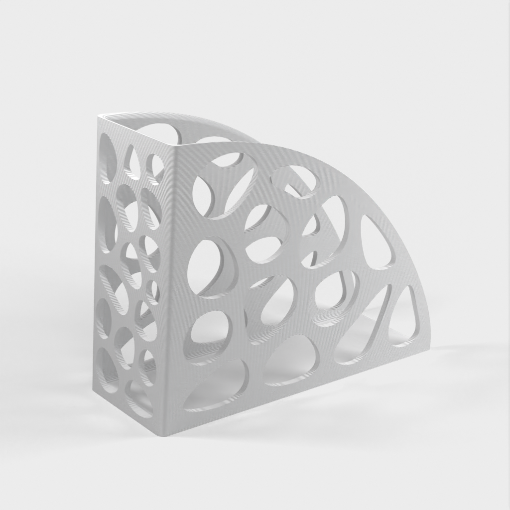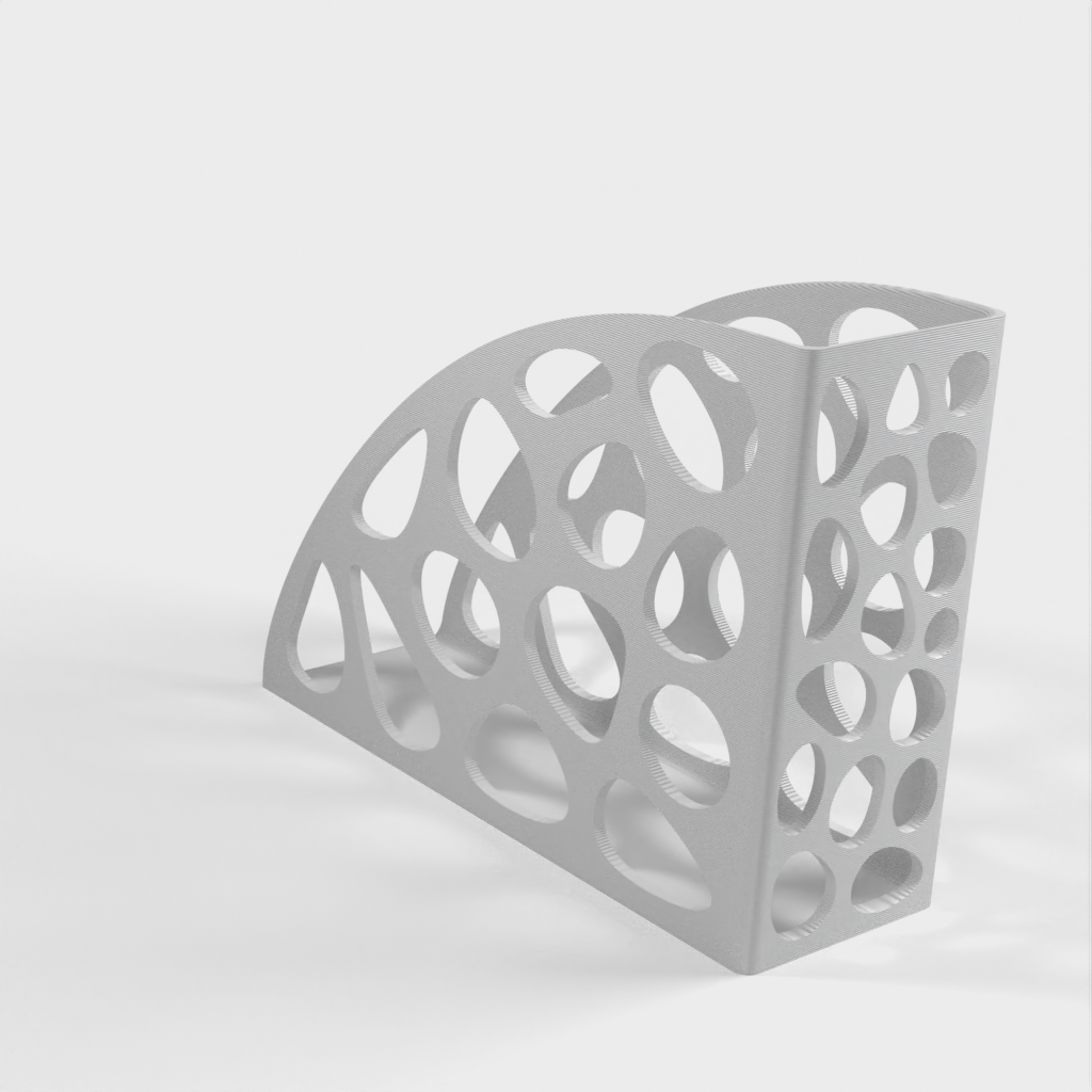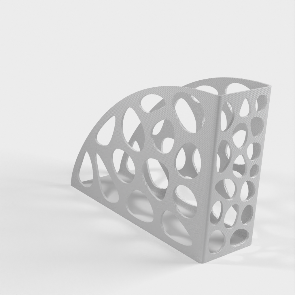 Dit is een eenvoudige koffiefilterhouder gemaakt met een Voronoï-diagram. Het ontwerp maakt het gemakkelijk om je koffiefilters in je keuken te bewaren en te ordenen. Het product is robuust, maar licht, waardoor het gemakkelijk te verplaatsen is indien nodig.