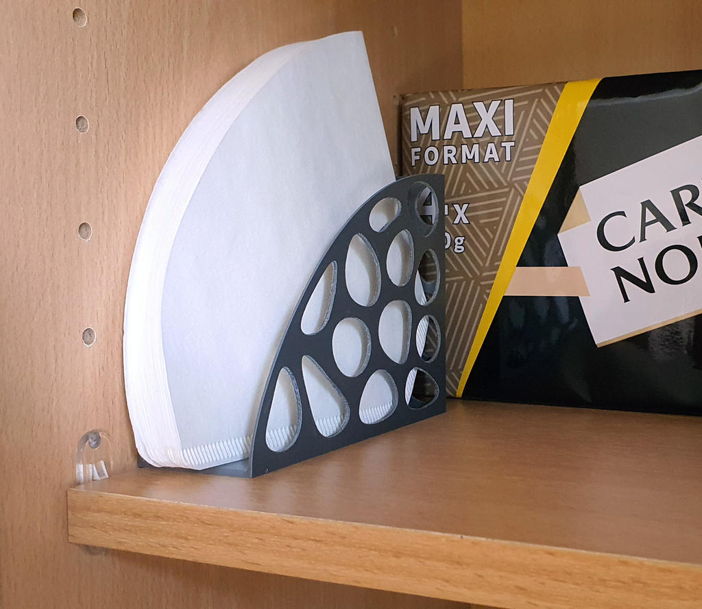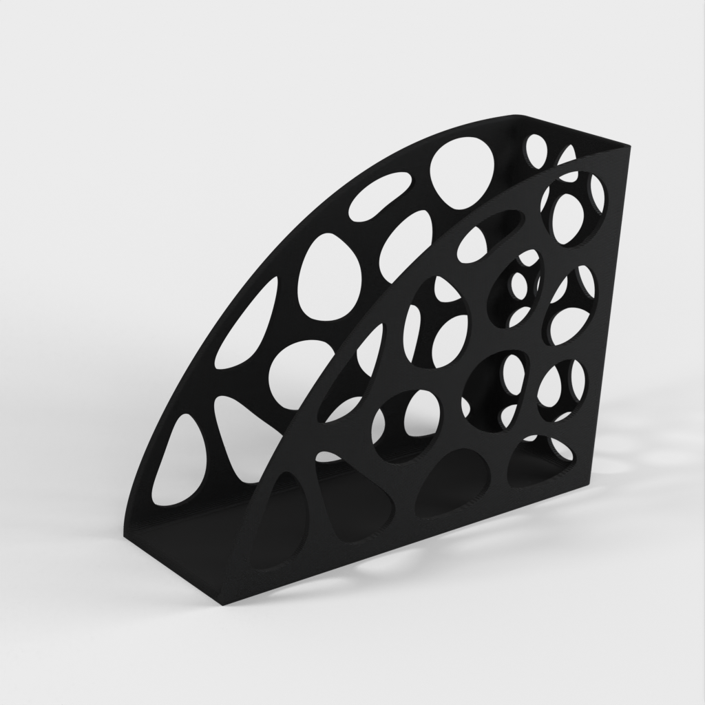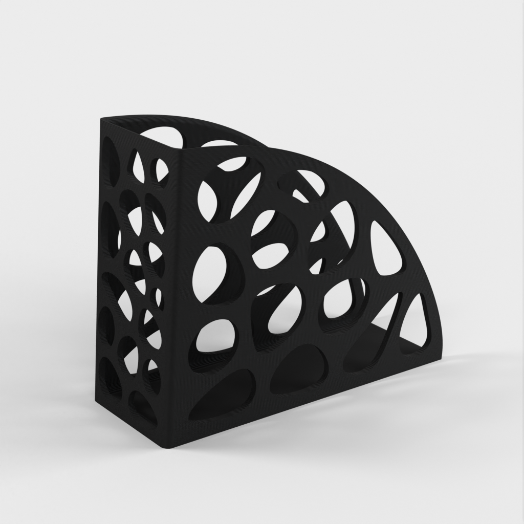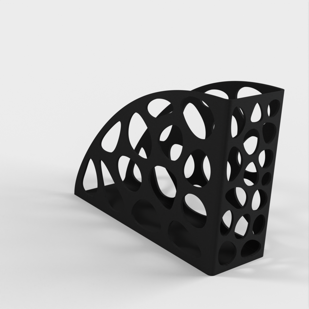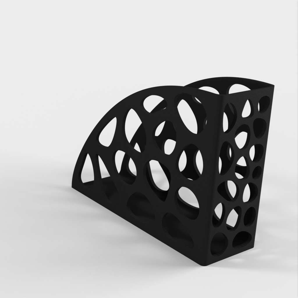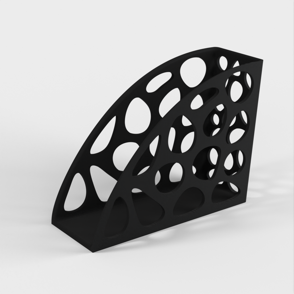 Dit is een eenvoudige koffiefilterhouder gemaakt met een Voronoï-diagram. Het ontwerp maakt het gemakkelijk om je koffiefilters in je keuken te bewaren en te ordenen. Het product is robuust, maar licht, waardoor het gemakkelijk te verplaatsen is indien nodig.